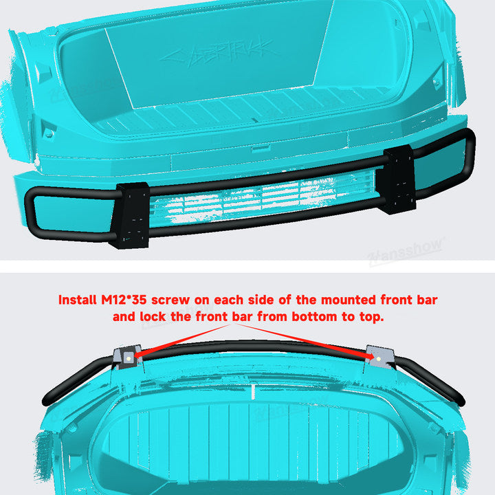 Tesla Cybertruck Front Bumper Bar Steel Guard-Q235 Front Bumper Black Texture|Hansshow