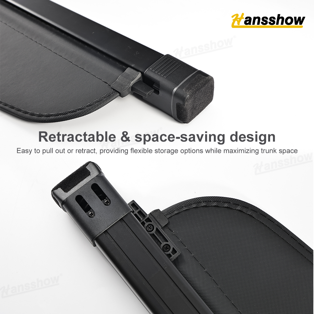 Smooth Retractable Design: Designed for everyday convenience, the Hansshow rear trunk retractable cargo cover opens and closes effortlessly. Simply pull to cover your trunk items, or retract when you need full cargo space.