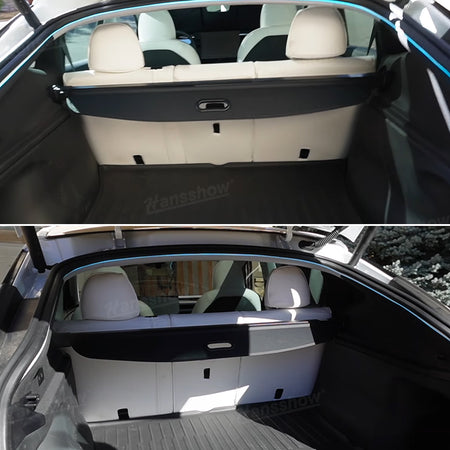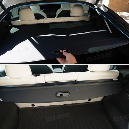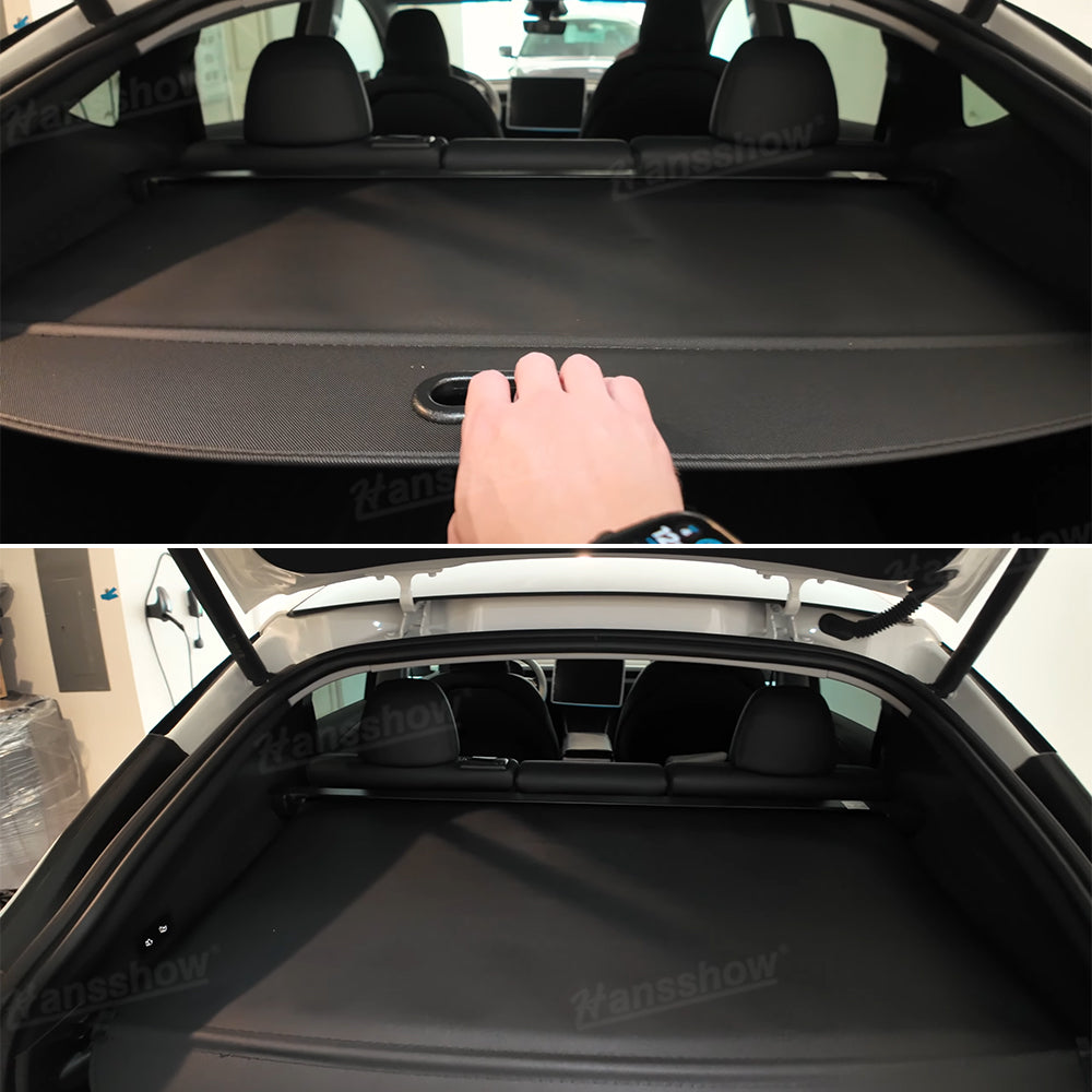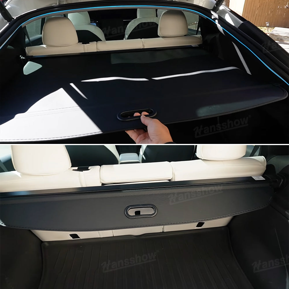Custom Fit for Model Y Juniper: Hansshow rear trunk retractable cargo cover is precisely tailored for Model Y Juniper, ensuring a seamless fit that blends naturally with your Tesla’s factory interior.