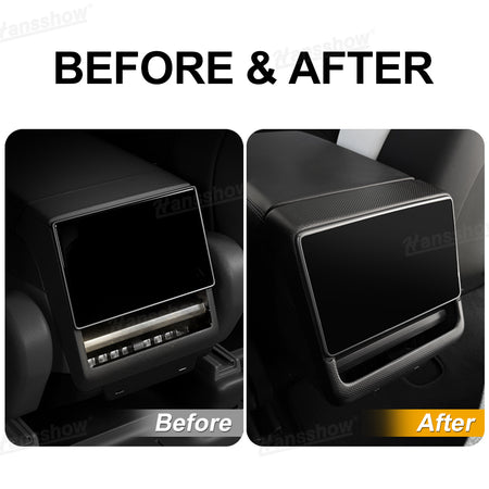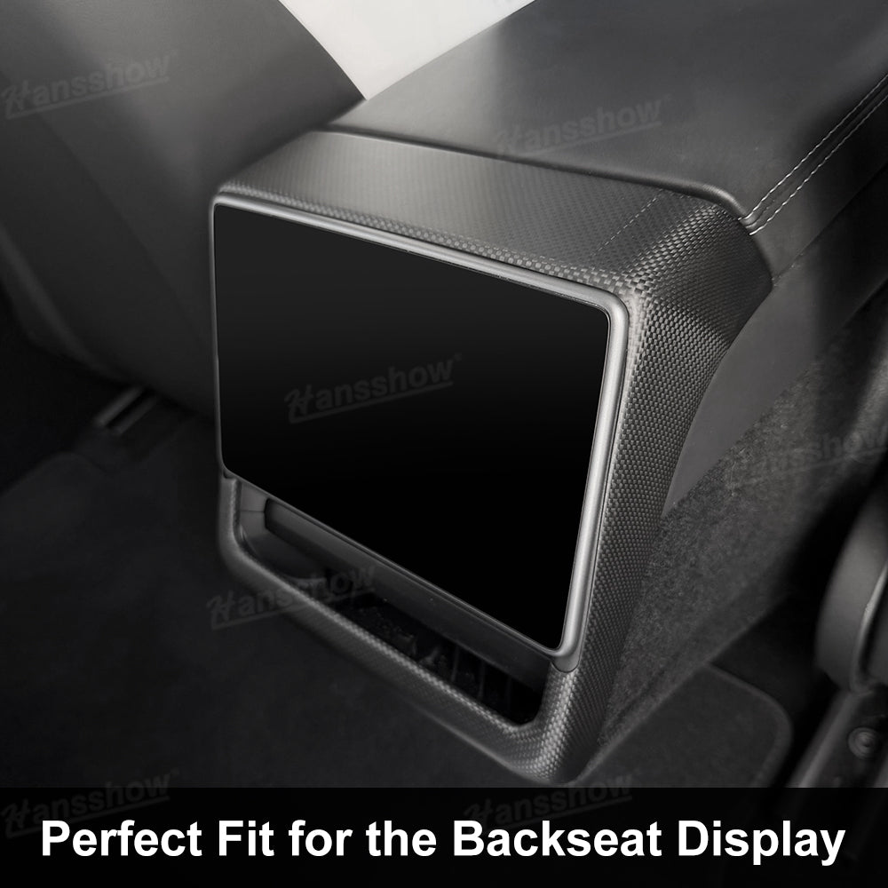 Performance Inspired Design & Perfect Fit: Inspired by the plain weave carbon fiber pattern on Tesla Model 3  Performance dashboards, Hansshow backseat screen frame perfectly complements your Model Y Juniper or 3 Highland interior. It seamlessly integrates around the backseat display, extending the sporty, high-tech look of the cabin while maintaining a cohesive and professional aesthetic.