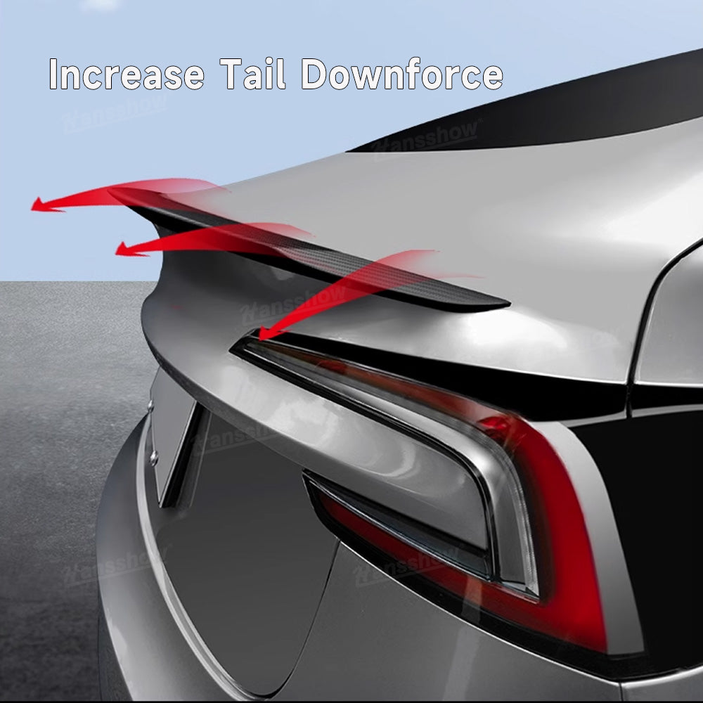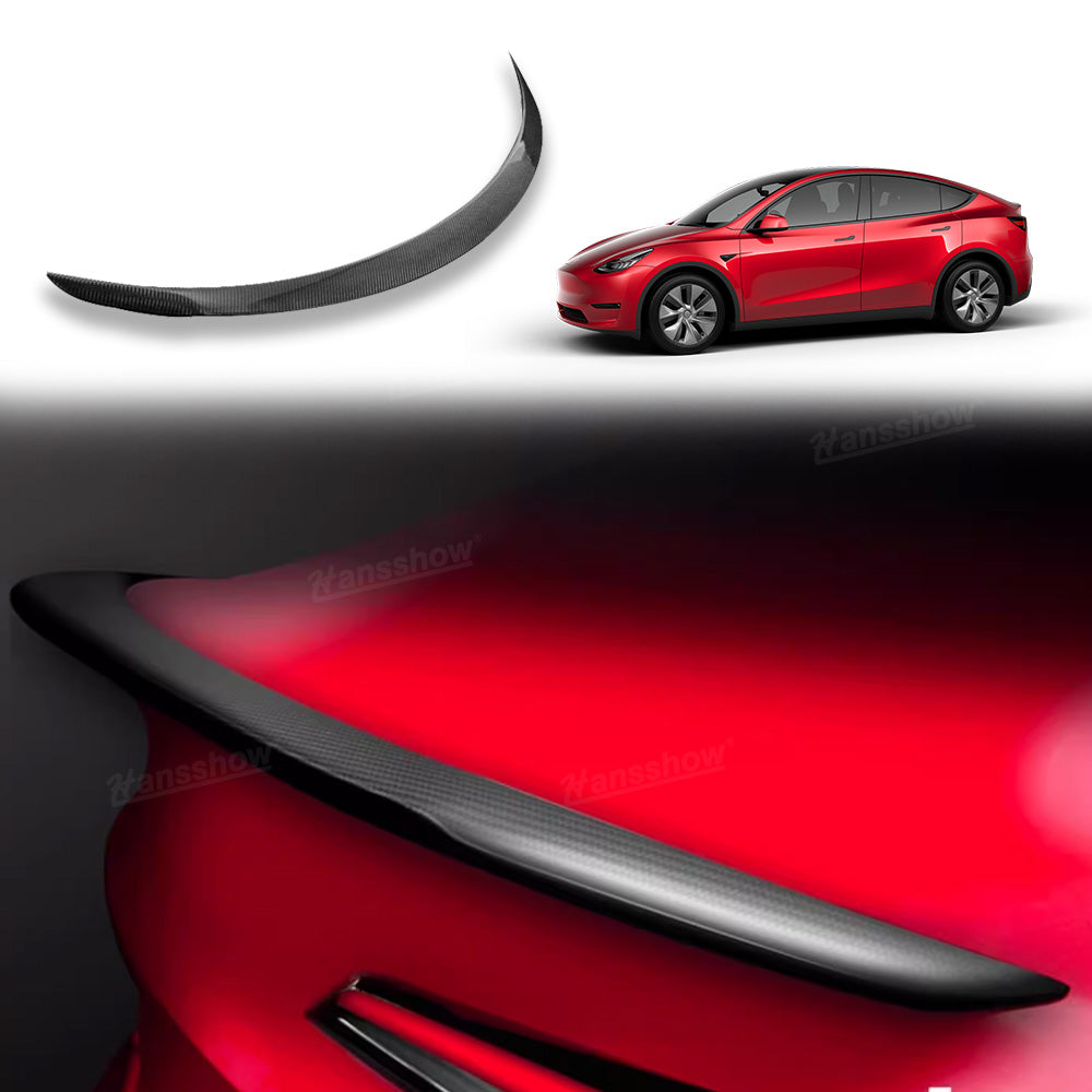 Tesla Modell Y Real Carbon Faser Schwanzspoiler Flügel Heckstamm Deckel inspiriert von Modell 3 Performance | Hansshow