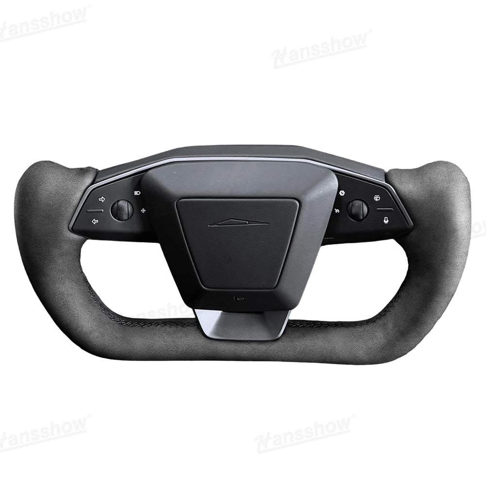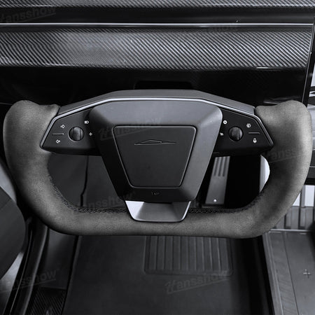 When Tesla unveiled its futuristic beast, we knew right away that it deserved an equally bold upgrade. That’s where the idea for our Cybertruck Yoke steering wheel was born. Our team of auto enthusiasts and engineers didn’t just want to create a yoke that looked cool—we wanted it to feel right in your hands and deliver a driving experience as unique as the Cybertruck itself. We spent months testing materials, tweaking ergonomics, and fine-tuning the design until everything clicked. The result? A high-performance yoke wheel with a premium grip, OEM quality, and futuristic driving experience that seamlessly match the Cybertruck’s cutting-edge vibe. Whether you're cruising down the highway or tackling off-road trails, the Hansshow Yoke turns heads—and turns driving into an experience. This version features a carbon black Alcantara leather finish, delivering a soft, grippy, and luxurious feel for every drive.