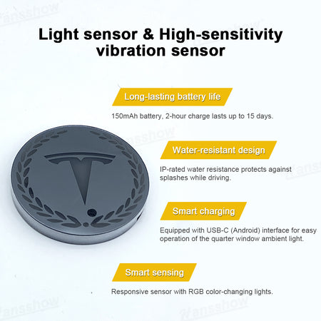 Smart RGB Lighting with Motion and Light Sensing: Upgrade your Tesla cabin with the Triangle Window Acrylic Ambient Light. Hansshow Triangular Glass Decorative Light features smart motion and light sensors that automatically adapt to your driving environment, offering seven vibrant colors including red, blue, green, purple, yellow, pink, and white.