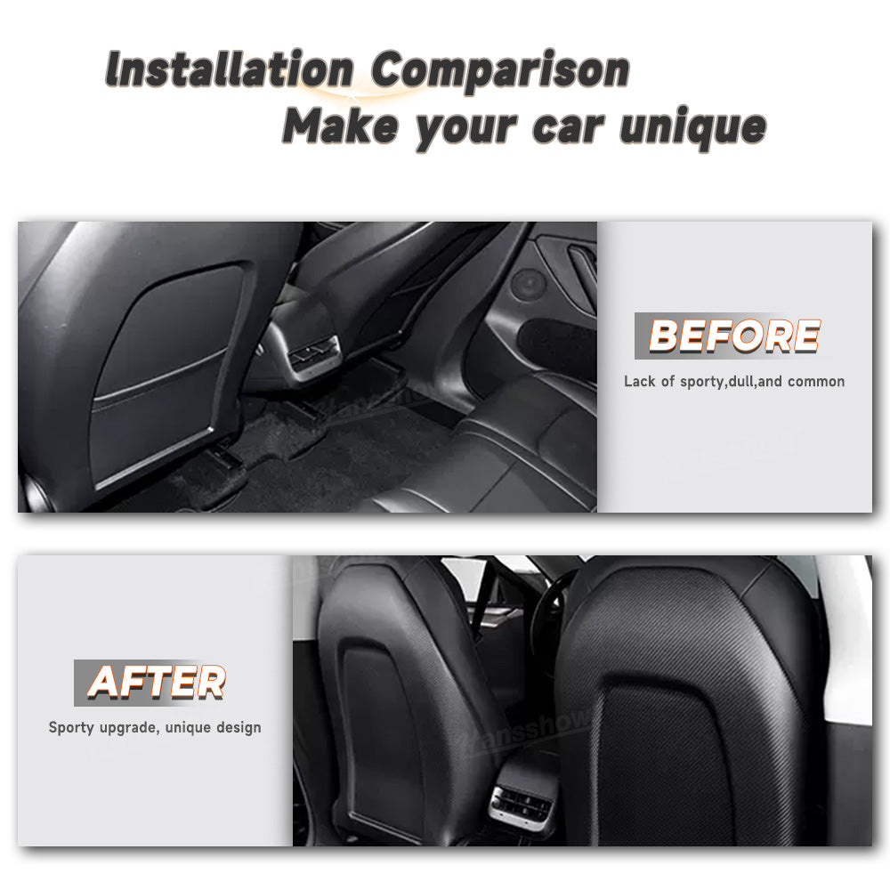 Easy Installation: Designed for straightforward installation, these seat back replacements can be effortlessly added to the rear seats of your Tesla Model Y/3/3 Highland, enhancing their visual appeal with minimal effort.These ultra-premium seatbacks are direct replacements for the OEM back panel of your driver's and passenger seat.