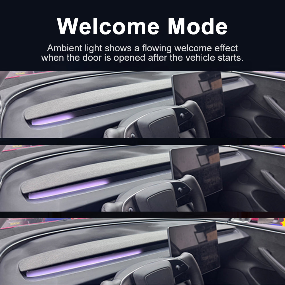 Upgrade & Smart Control: The ambient lights automatically sync with the factory ambient light colors and now fully support on-screen control via the central touchscreen on Model 3 Highland and Model Y Juniper.