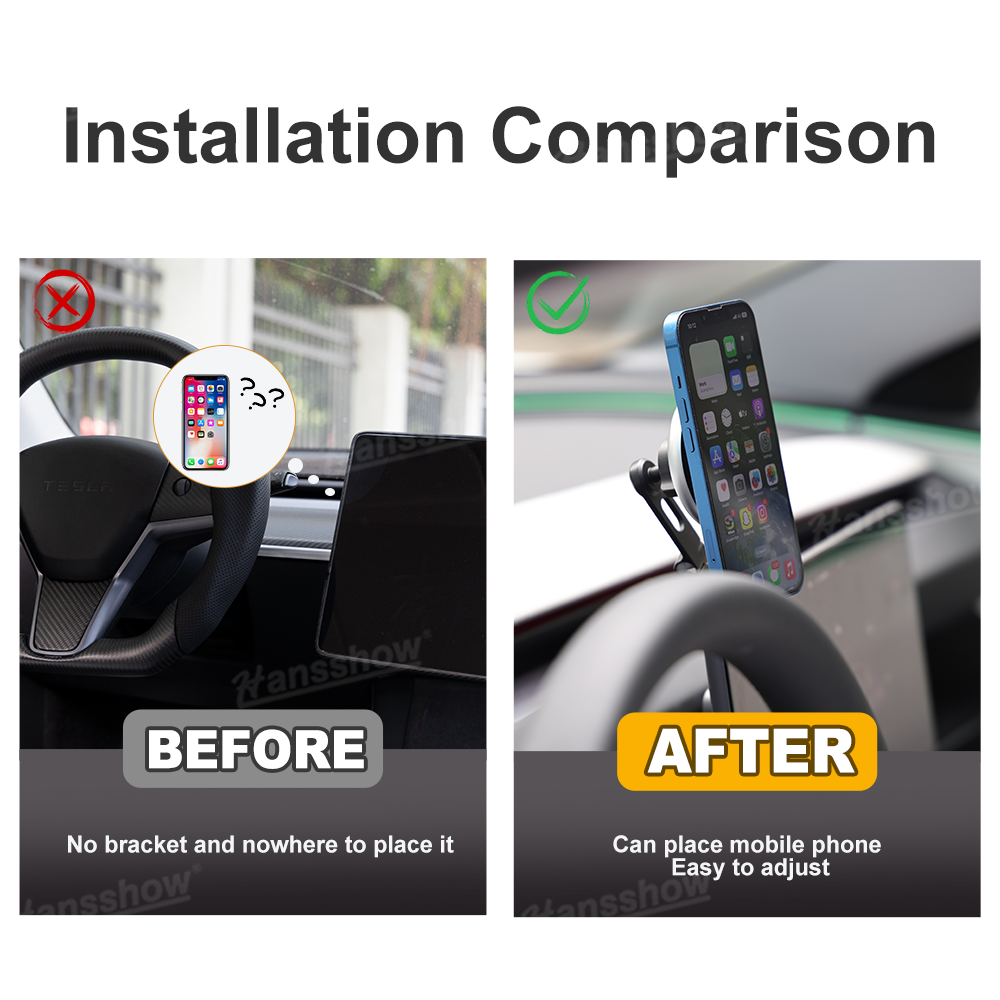 One of the standout features of Hansshow's phone mount is its floating structure, which creates a visually striking effect. Thanks to the innovative combination of mechanical design and magnetic technology, your phone looks like appears to hover effortlessly in mid-air when mounted. This design not only offers a stunning aesthetic but also enhances the tech-savvy and modern vibe of your Tesla.