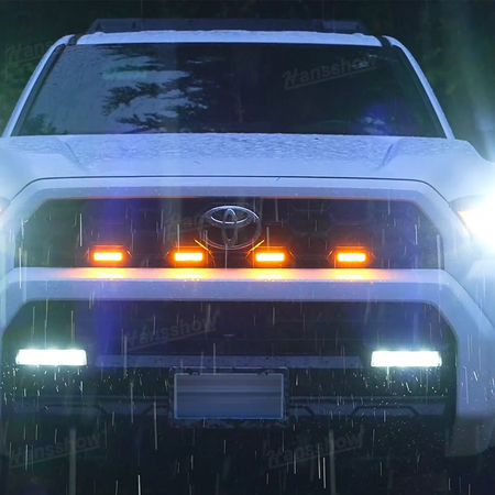 IP68 Waterproof Sealed Design: Hansshow grille lights are built with tightly sealed housings and carry an IP68 waterproof rating, making them highly resistant to rain, snow, and mud. The sealed design helps prevent moisture buildup and reduces the chance of fogging, ensuring dependable visibility in most weather conditions.
