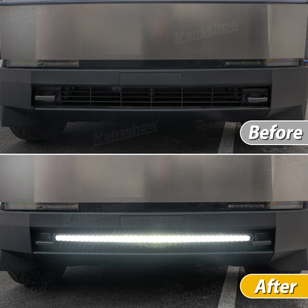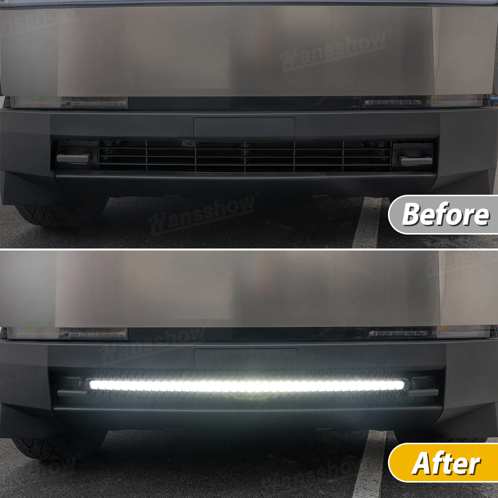 Upgrade your Cybertruck for unmatched nighttime visibility with the Hansshow Front Bumper LED Light Bar. Engineered with central spot LEDs for long-range projection and side flood LEDs to widen the beam, it helps you detect obstacles, wildlife, and road hazards earlier, enhancing safety and confidence on every drive.