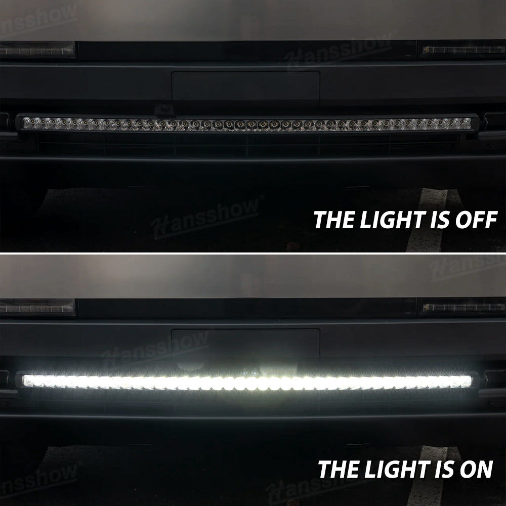 Enhanced Nighttime Visibility: Hansshow Cybertruck Front Bumper LED Light Bar  use central spot LEDs to project light far ahead and side flood LEDs to widen the beam, helping you see obstacles, wildlife, or road hazards earlier.