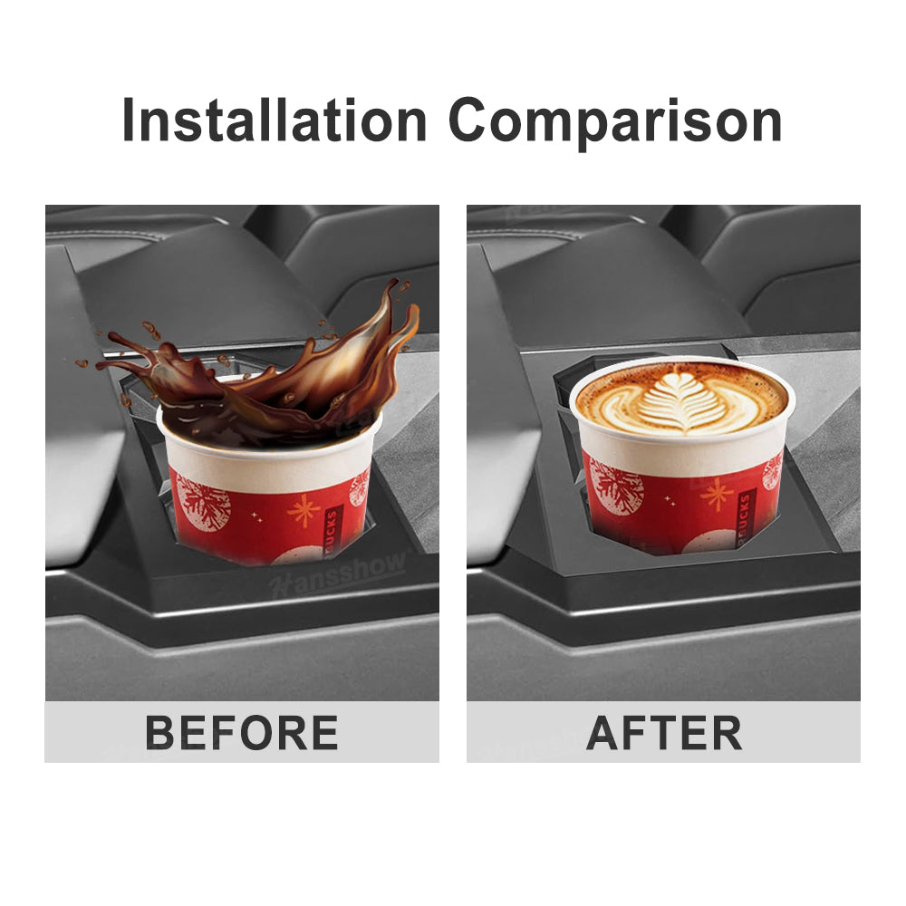 Specifically engineered to seamlessly integrate with the Tesla Cybertruck's center console, ensuring a snug and secure fit for various cup sizes.Fits like a glove and looks like it’s part of the vehicle. You can’t tell it’s an insert.