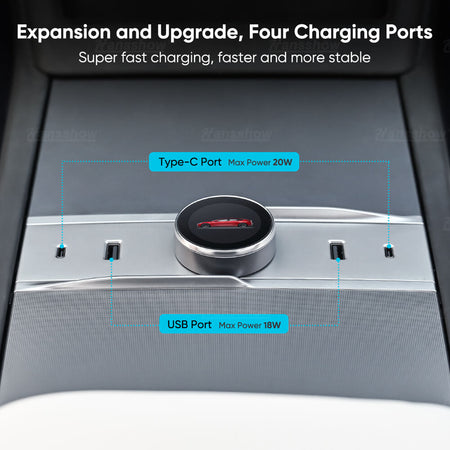 • Multiple Quick Charge Ports: Equipped with 4 charging ports, including Type-C and USB, supporting up to 20W and 18W charging respectively, ensuring all your devices stay powered.