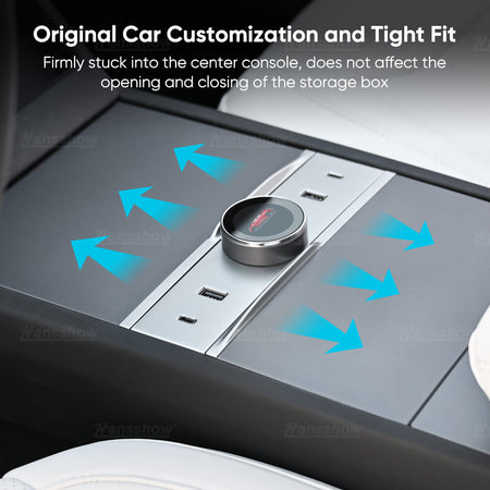 Elevate your Tesla Model 3 Highland's interior with the Highland 3 Smart Rotating Gear Shift Dock. This innovative accessory seamlessly integrates advanced features for an unmatched driving experience: