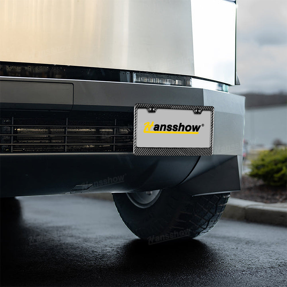 Hansshow Tesla Cybertruck License Plate Frame Holder Real Carbon Fiber No Drilling 2PCS