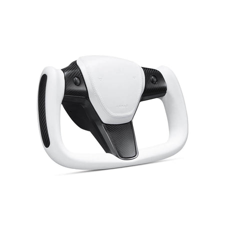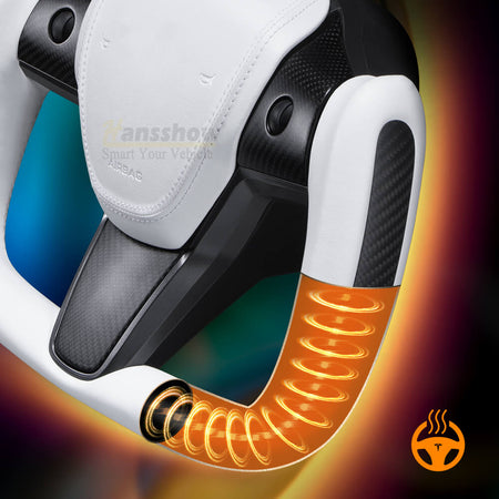 Hansshow Yoke Steering Wheel Ellipse style Nappa White Leather with Heated Feature for Tesla
