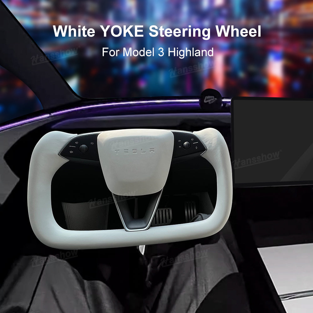 Hansshow Yoke Steering Wheel Nappa Leather White For Tesla Model 3 Highland