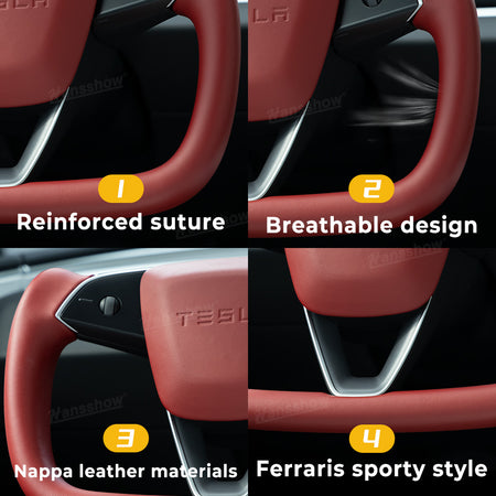 Ferrari-Inspired Driving Sensation: Experience the thrill of driving with a touch of Ferrari inspiration, as the red nappa leather wrap adds a sporty and luxurious feel to your Model 3 Highland steering wheel.