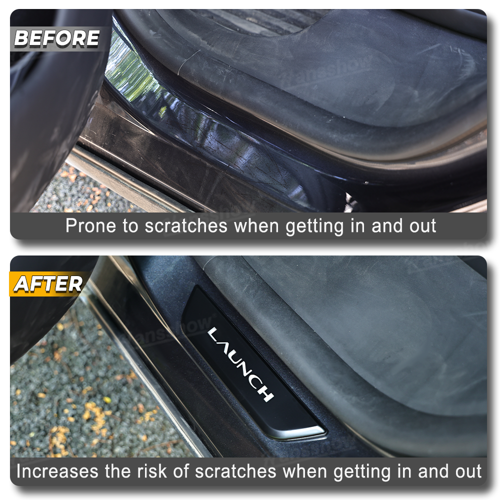 Custom Fit: Hansshow door sill protectors with led lights are designed to fit Tesla Model Y 2025.03+. It has the letter "Launch" on it, which is different from the ordinary Tesla door sill.