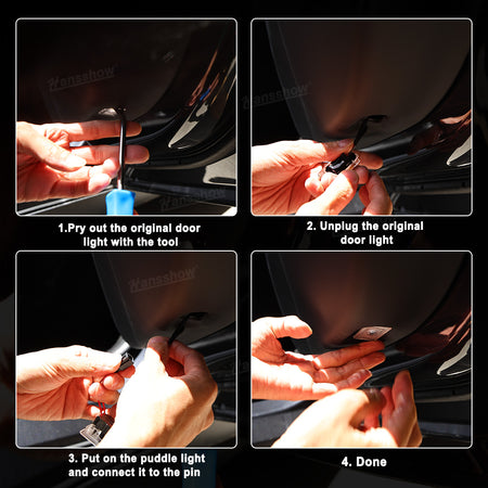 Easy InstallationDesigned for quick and straightforward installation, Tesla Model 3&Y projector lights fit seamlessly into the door panel without the need of drilling or professional help. Simply replace the existing door lights with the new ones. It takes less than 15 minutes to do your whole car.