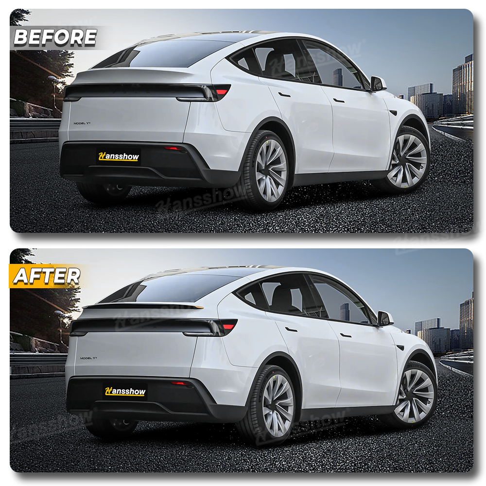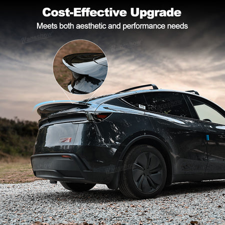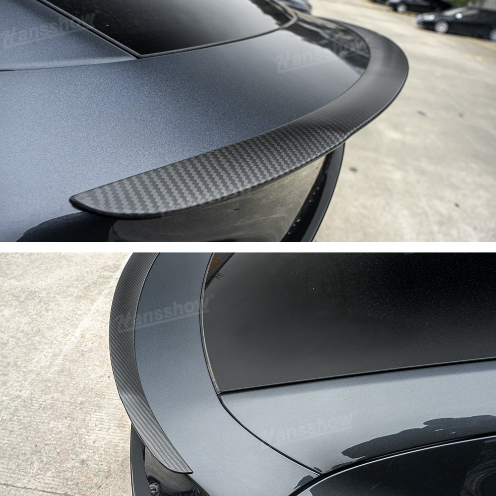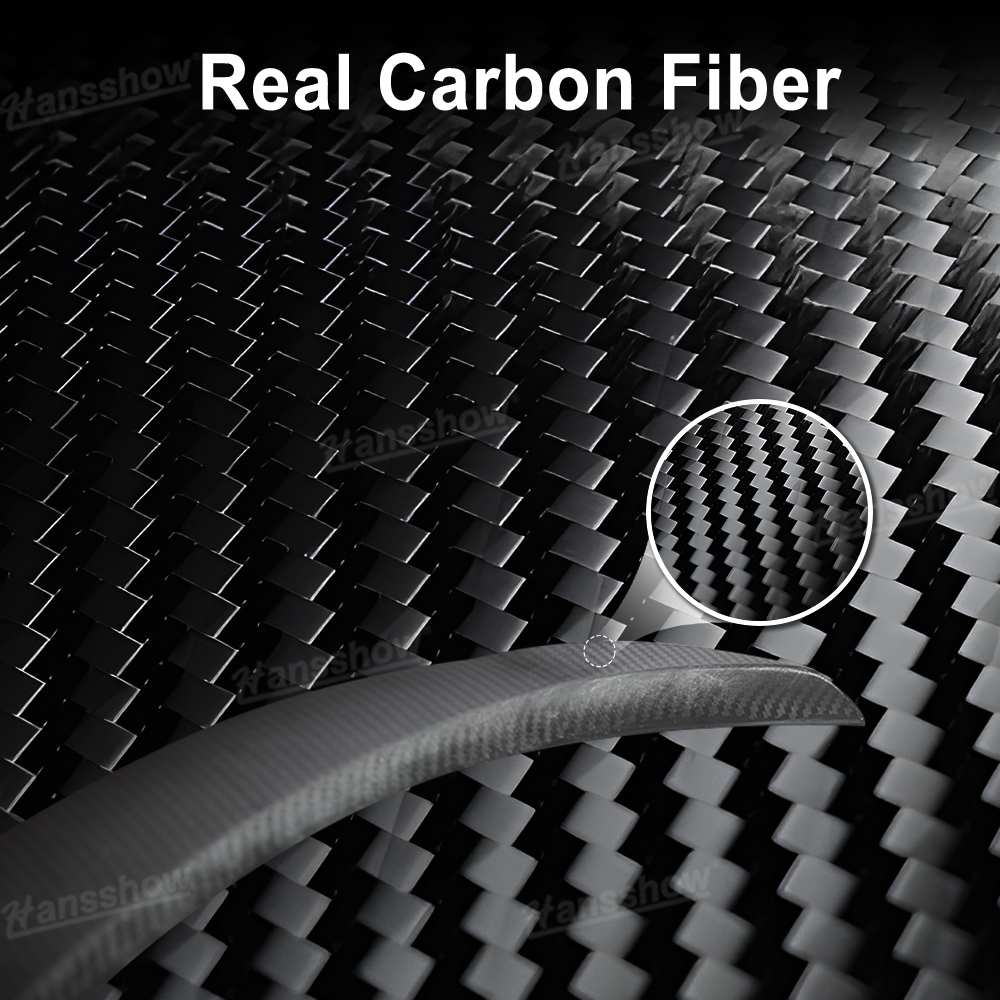 [The Hansshow Spoiler design]: fit all 2025+ Model Y Juniper variants, including Standard, Long Range, and Performance models, ensuring a flawless and precise installation. [Crafted from authentic dry molded carbon fiber]: it contains no fiberglass or plastic, delivering a premium look with exceptional durability. The UV coating ensures the spoiler remains resistant to yellowing and fading, preserving its beauty and performance over time. [Choose from two stunning finish options]: the Hansshow Matte (Dry Look), which aligns with the OEM Performance spoiler for a sleek and modern appearance with minimized glare, or the Glossy (Wet Look) for a rich, deep finish that makes a bold statement. [Easy to Install ]: requiring no screws or glue. It attaches securely using pre-applied double-sided tape, mirroring Tesla’s OEM installation method. All necessary materials and an installation guide are included with the Hansshow kit.