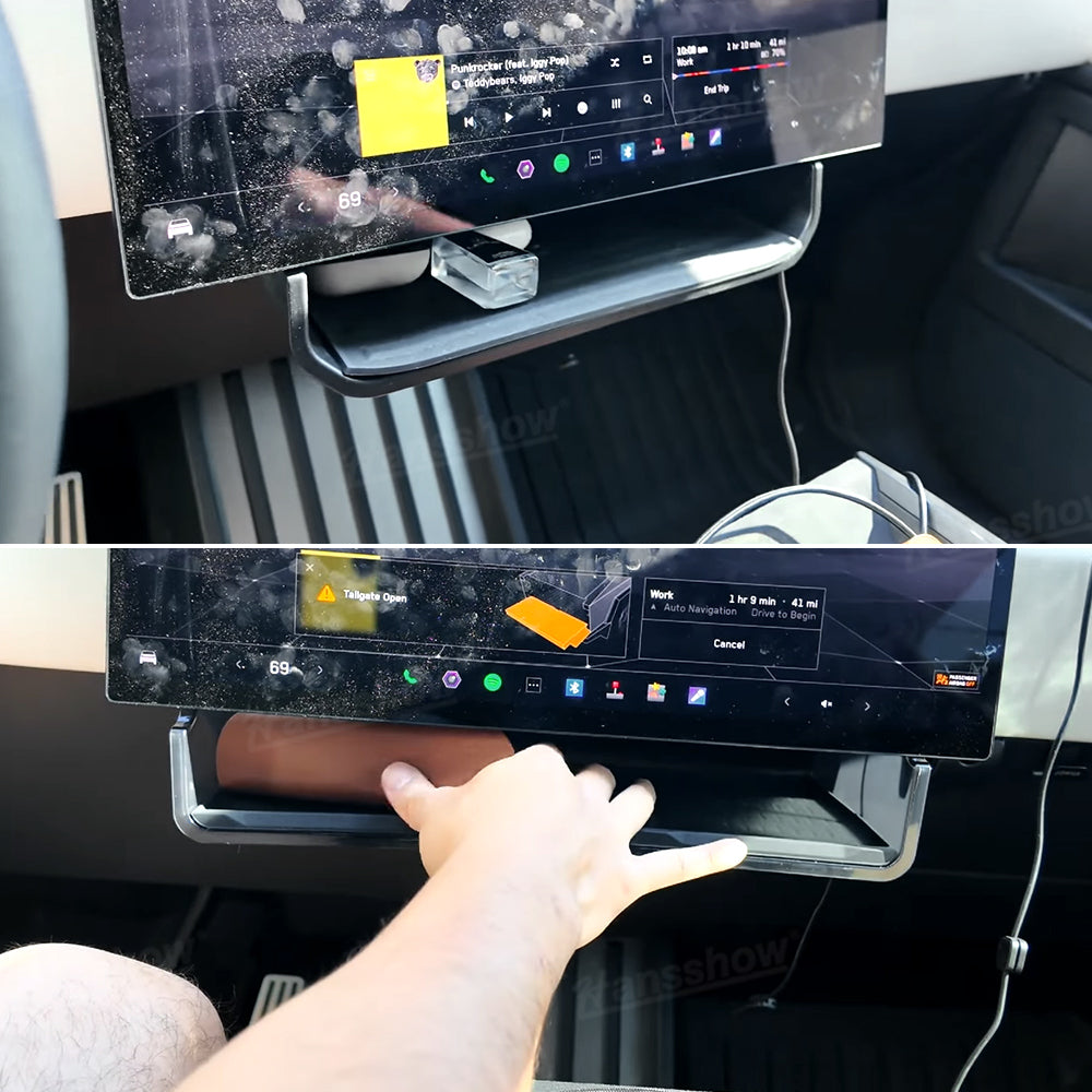 Tesla Cybertruck Under Screen Storage Box with Anti-Slip Silicone Lining | Hansshow