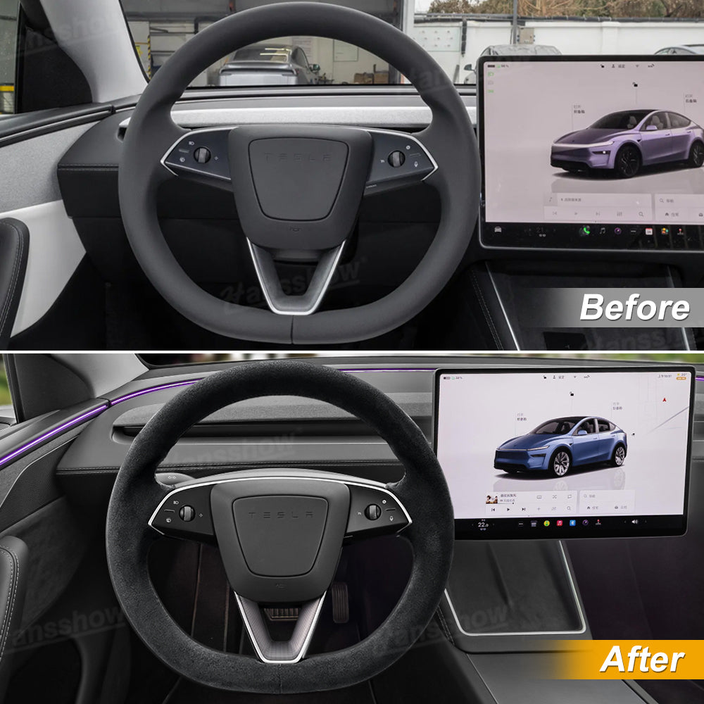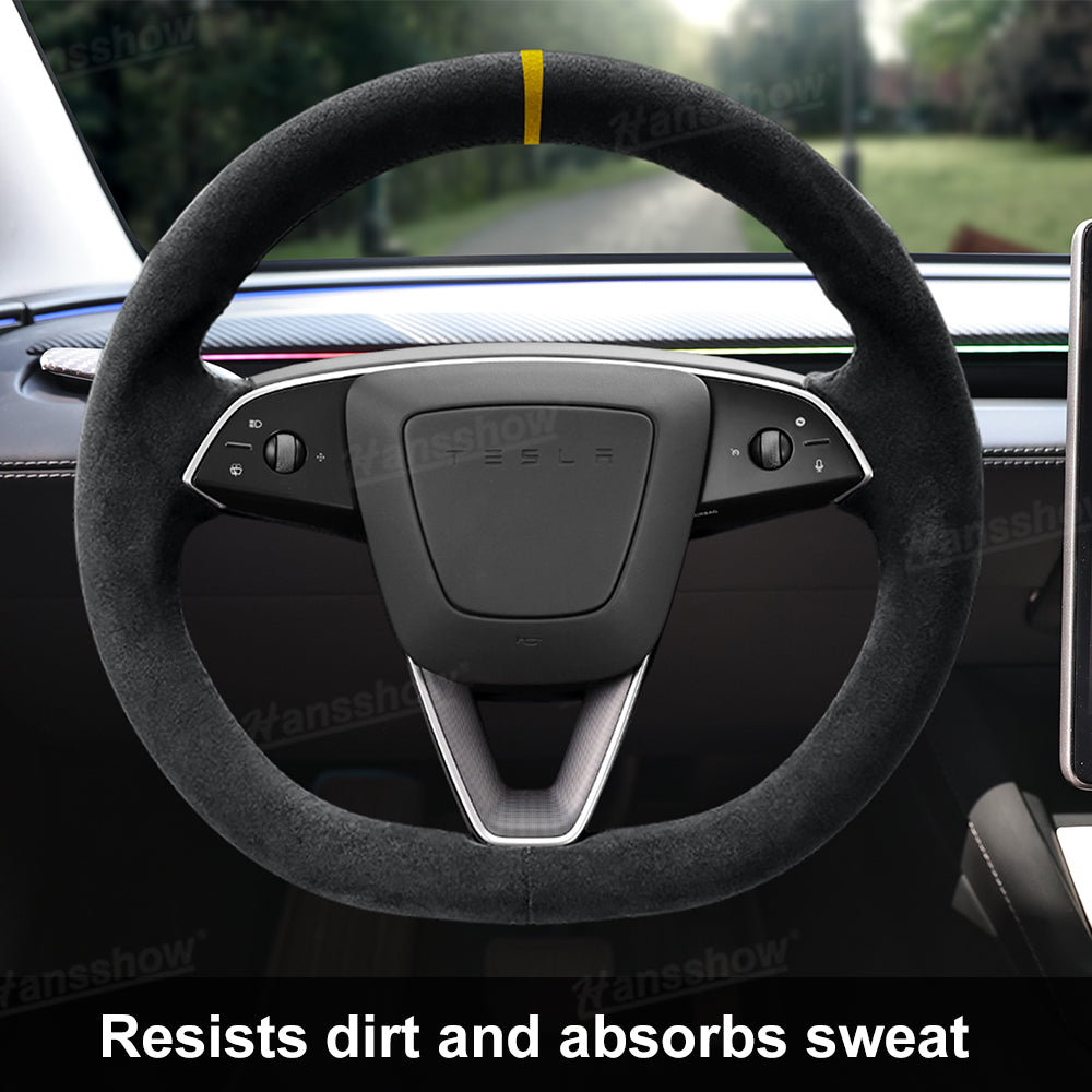 Model Y Juniper/3 Highland Premium Alcantara Custom Fit Steering Wheel Cover for Tesla