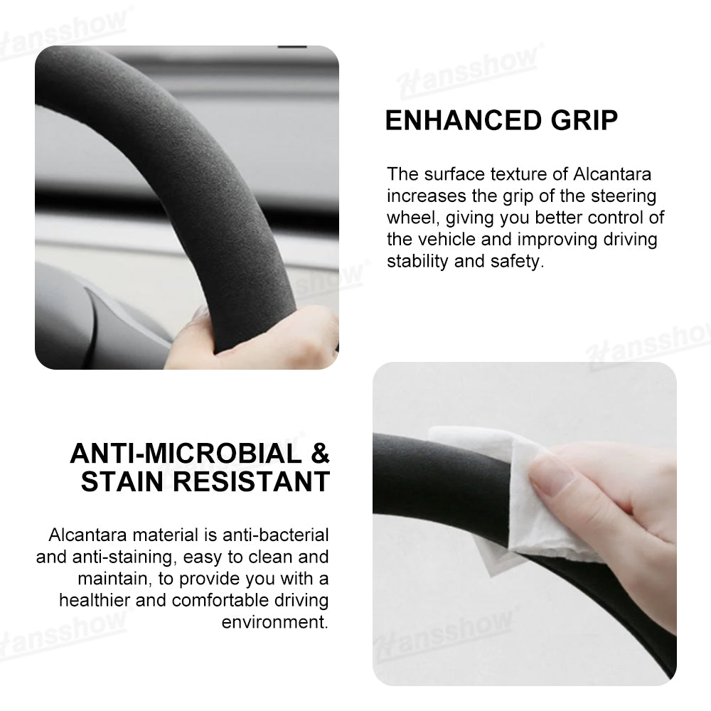 Premium Material: Made from authentic Italian Alcantara suede, Hansshow steering wheel cover delivers a refined high end feel while offering excellent durability and a sporty appearance.
