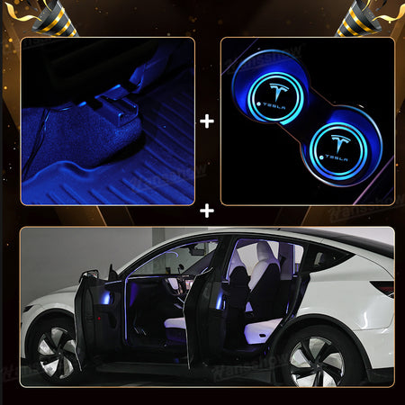 Model Y Juniper Interior Ambient Lighting Kit RGB USB-C Rear Screen Ambient Lighting & Door LED Strip Lights & LED Cup Holder Lights Mats