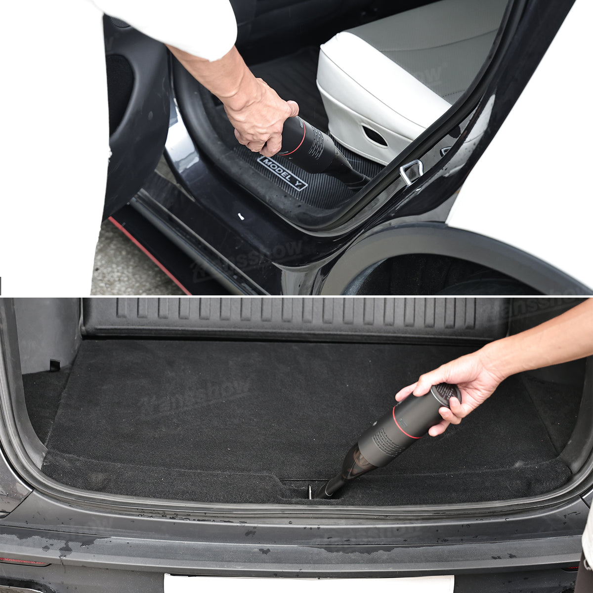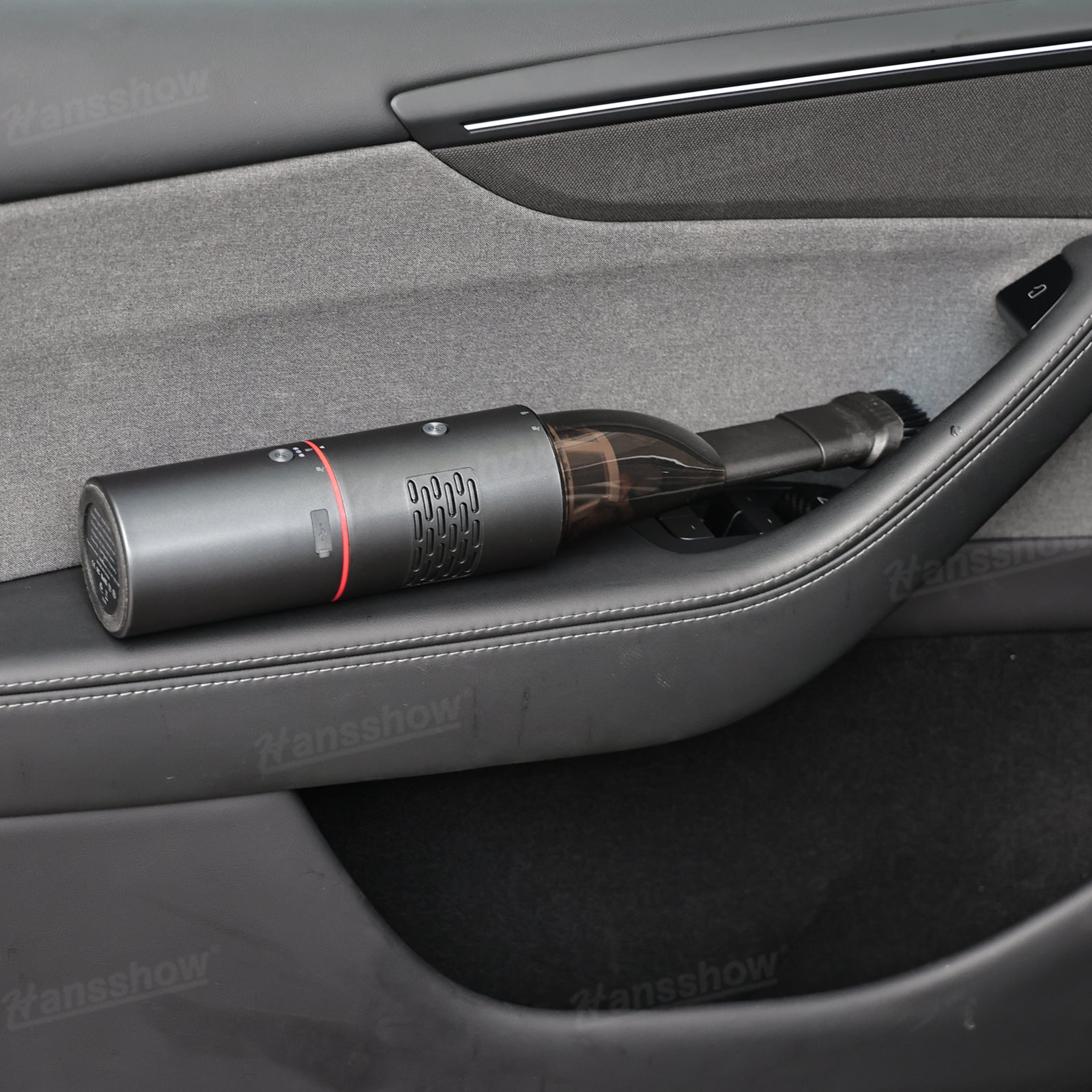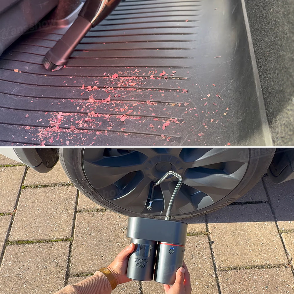 Strong Car Vacuum Cleaner: Clean every corner of your Tesla with 19,000Pa suction. Features a washable dual-layer filter and comes with an extension tube and brush head for hard-to-reach spots.
