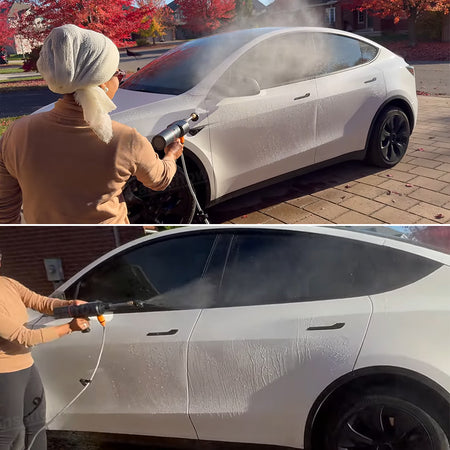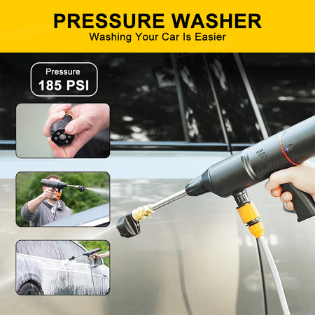 High-Pressure Car Washer: Blast away dirt and grime with 185 PSI powerful cleaning pressure. Includes a spray gun, 2 nozzles, foam bottle, multi-purpose nozzle, and 16-ft hose for versatile car washing.