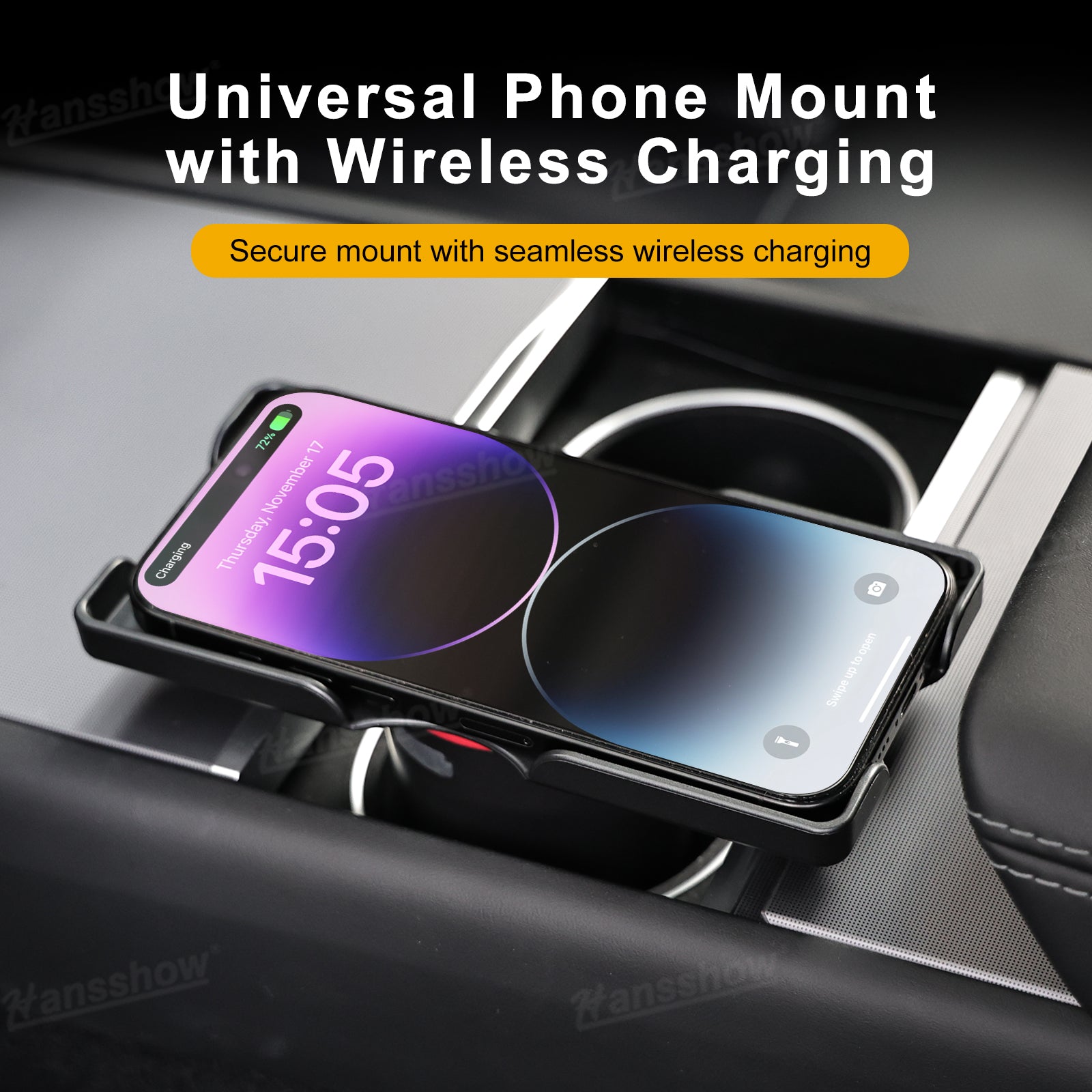 Universal Phone Mount with Wireless Charging: Secure any smartphone while charging wirelessly. Works seamlessly with the power bank for maximum convenience and easy access while driving.