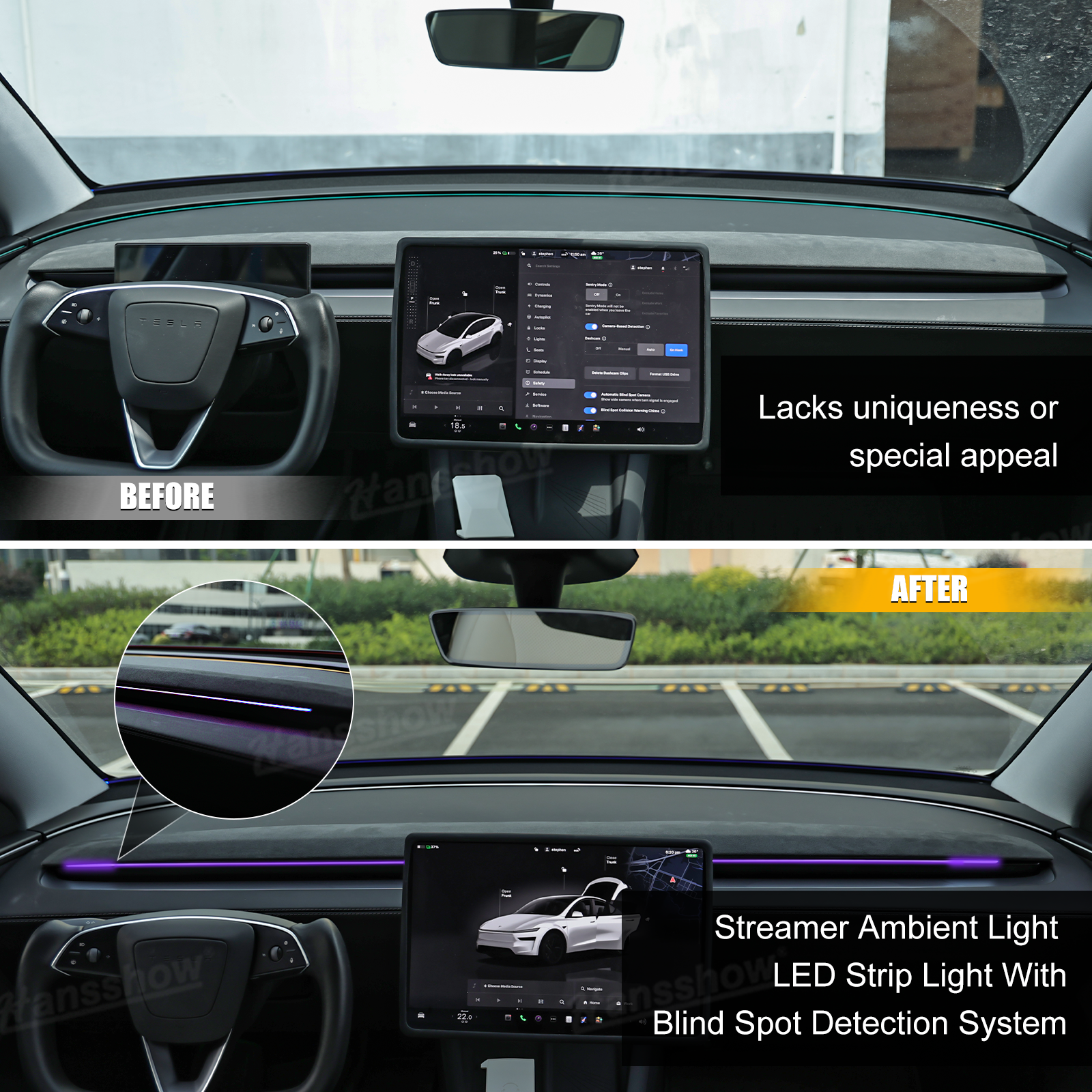 Model Y/Y Juniper & Model 3/3 Highland Streamer Ambient Light LED Strip Light With Blind Spot Detection System