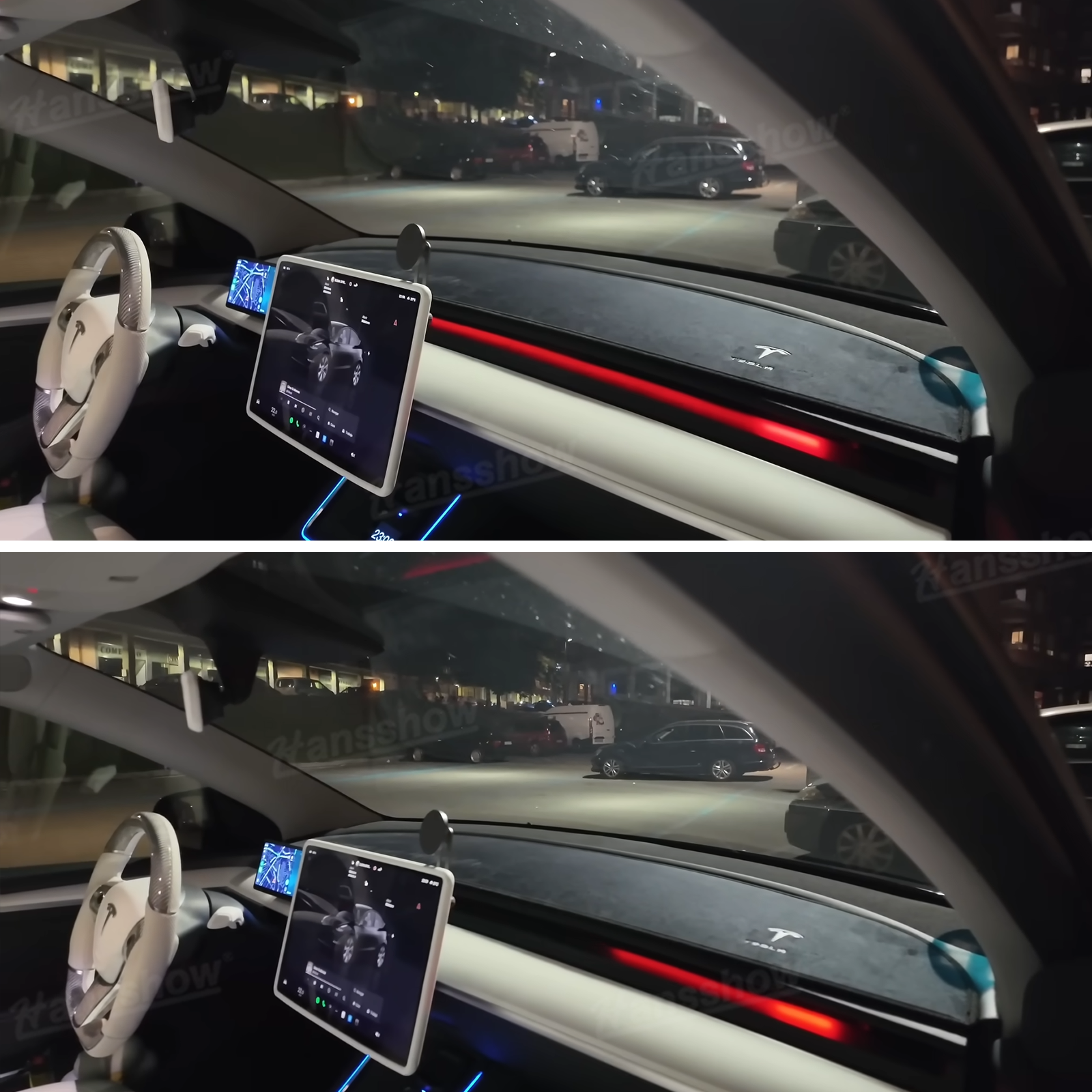 Hansshow's ambient light designed with Tesla owners in mind, which draws power directly from the passenger-side A-pillar, just like the factory screen connection. No wire splicing, no dashboard teardown, and zero impact on your original warranty. It’s a clean, secure install that keeps your interior untouched while upgrading both safety and style.