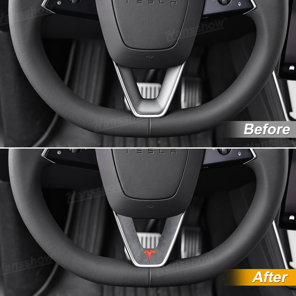 Model Y Juniper/3 Highland Alcantara Steering Wheel Lower Trim Cover with T Logo
