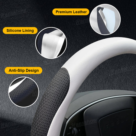Full Protection with Style Upgrade: Protects your steering wheel from sunlight, fading, scratches, and everyday wear. The Hansshow Steering Wheel Cover not only preserves the original wheel but also elevates the look of your Tesla interior with a sporty and elegant touch.