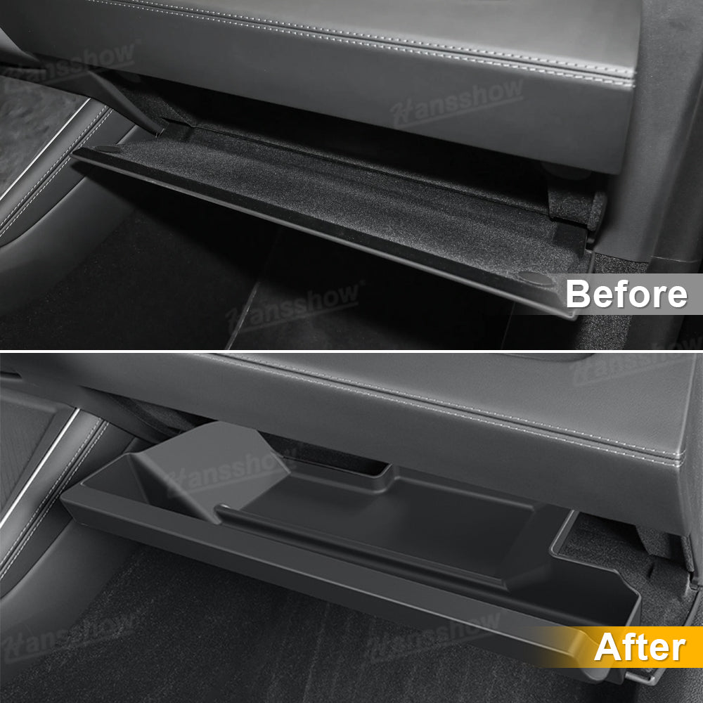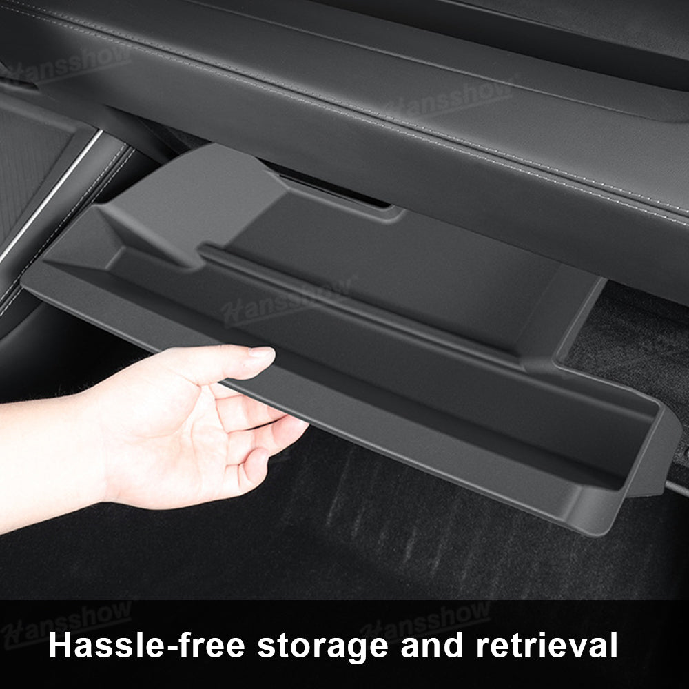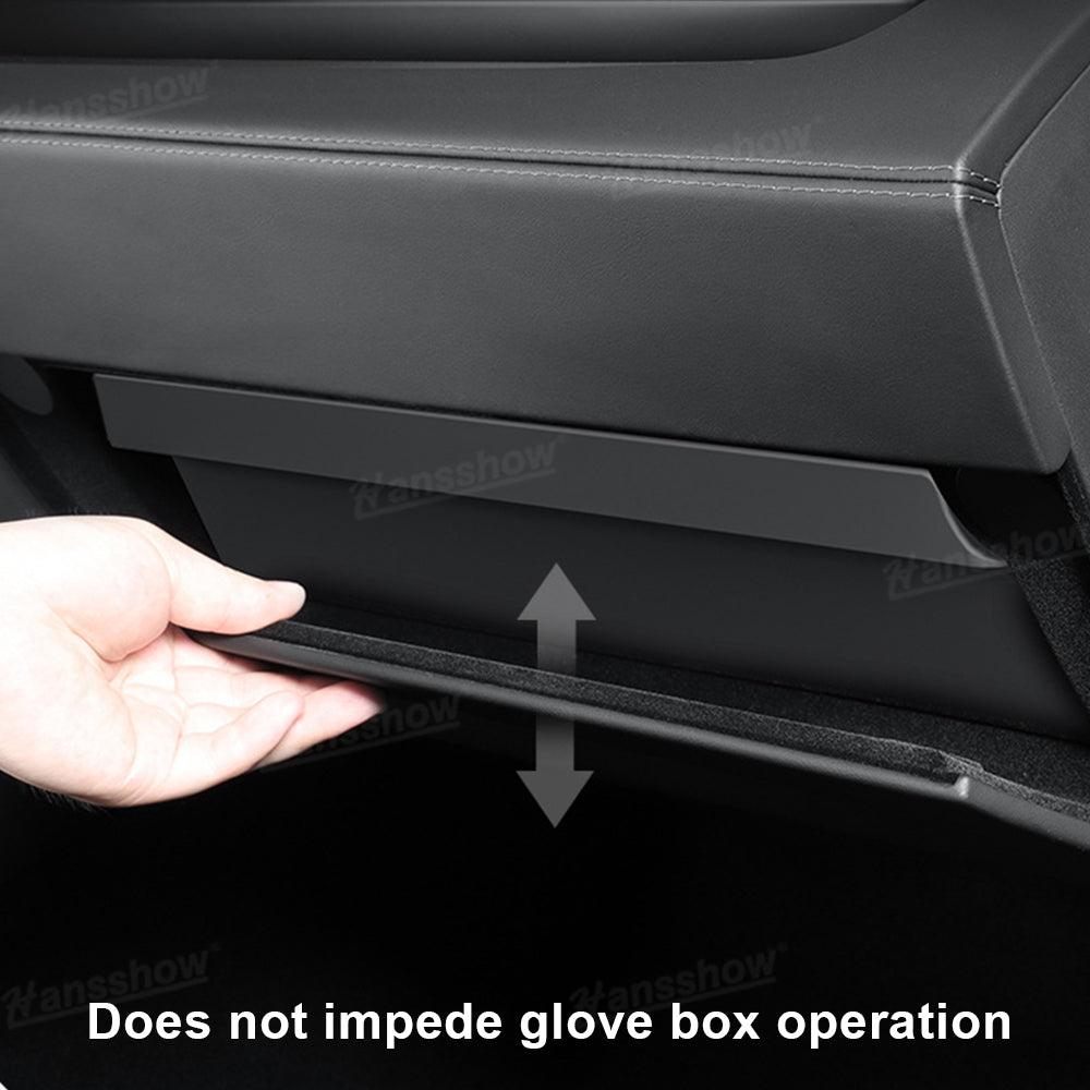 Custom Fit for Model Y Juniper: Molded to Model Y Juniper glove box’s original OEM specs, the Hansshow Glove Box Organizer fits perfectly. No loose movement or unusual rattling while driving and it never interferes with glove box opening and closing.