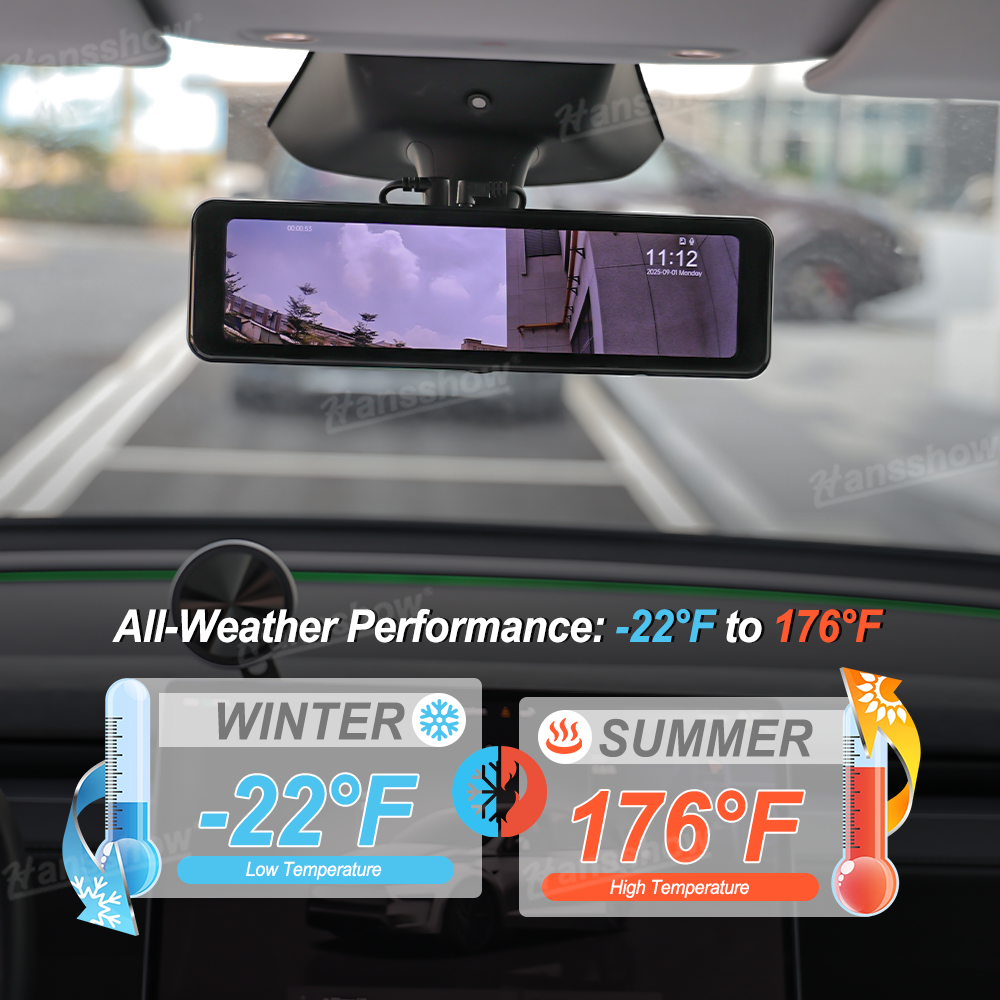 4K Ultra-High-Definition Recording: Equipped with an 8MP built-in sensor, Hansshow media rearview mirror records at an impressive 3840×2160 resolution with 30fps frame rate. Every drive is captured in vivid detail, ensuring you never miss critical moments.