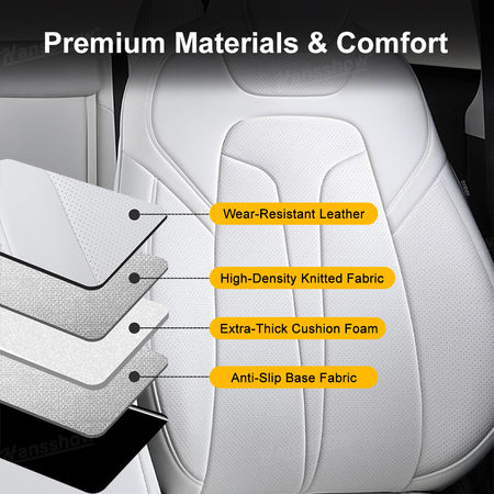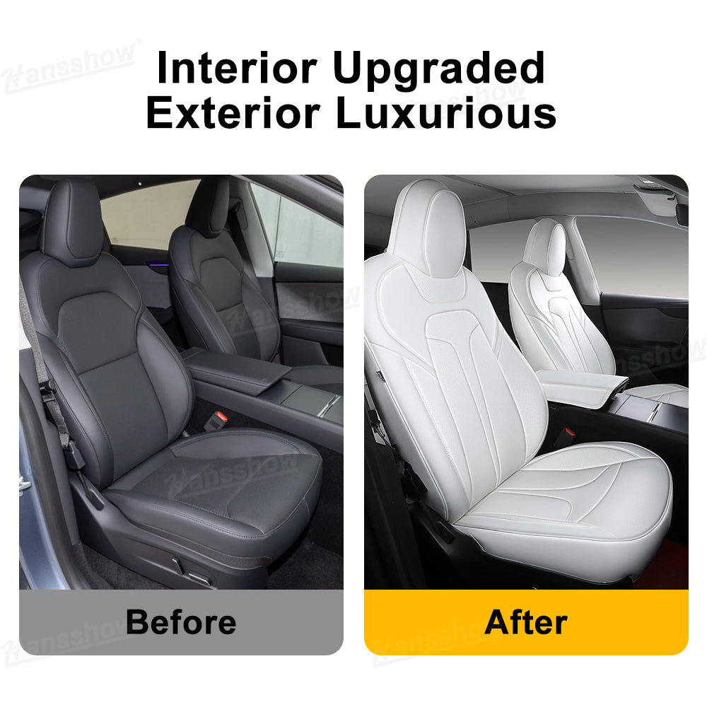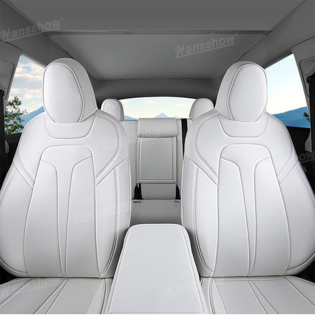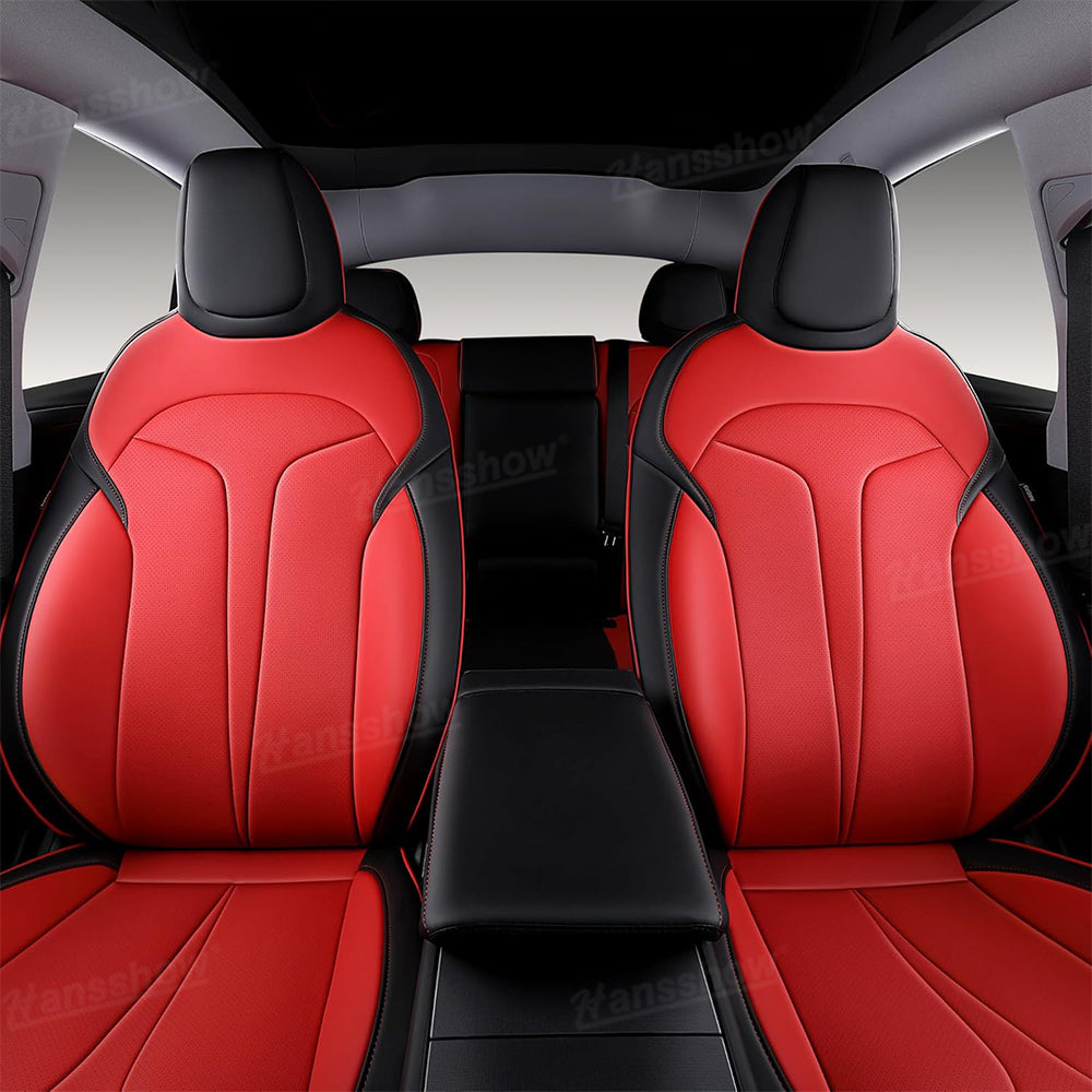 Premium Leather Construction: Hansshow Upgrade Seat Covers are crafted from high-quality premium leather that elevates your Model Y Juniper interior. The refined texture adds soft comfort on every drive and delivers a clean, upscale cabin appearance.