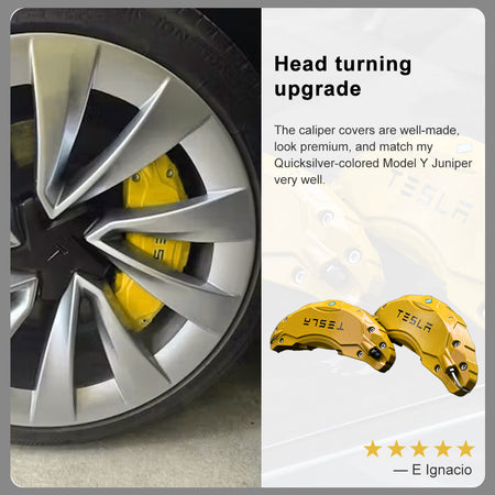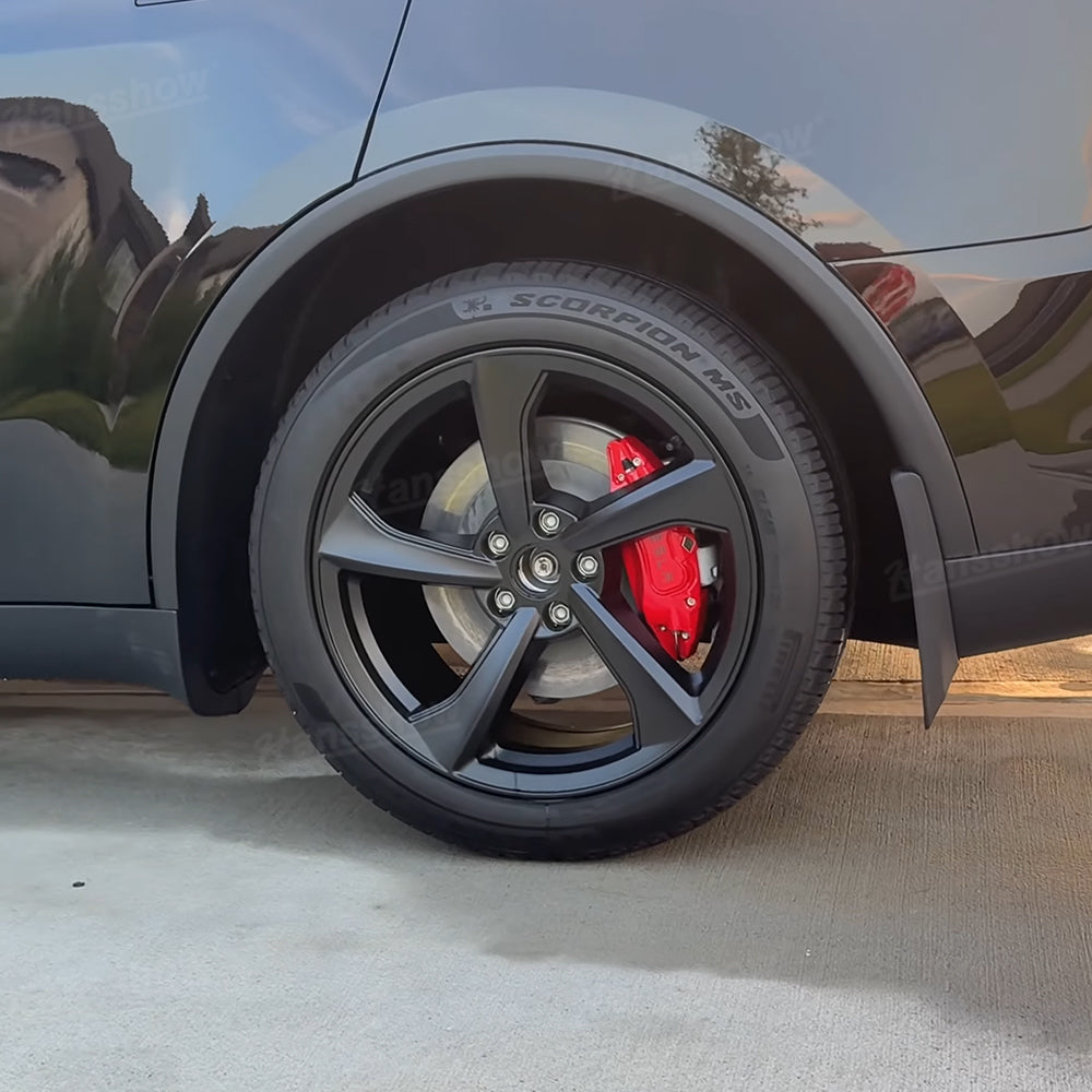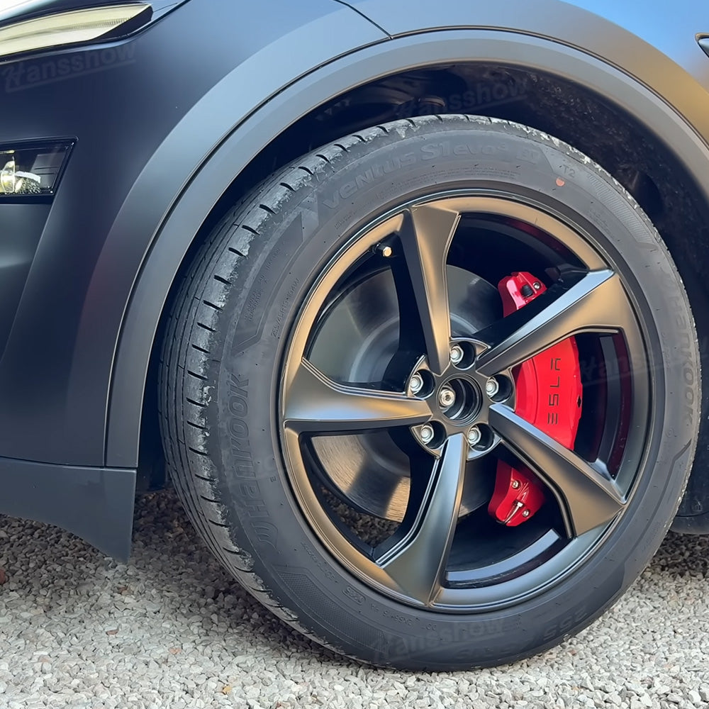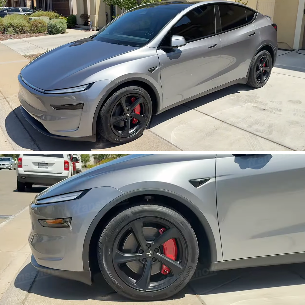 Installation is a breeze (10-15 minutes per wheel, DIY-friendly with included hex keys and decals), fully reversible, and warranty-safe. Heat-resistant aluminum alloy (up to 250°C curing) shrugs off daily abuse, rain, and road grime without fading or rattling, even on 19/20” wheels. No impact on braking—EVs rarely tax brakes anyway—and users rave about the premium feel and dust protection. It adds that sporty edge without mods, making your Juniper stand out effortlessly. 10/10—essential for style-savvy Tesla fans.