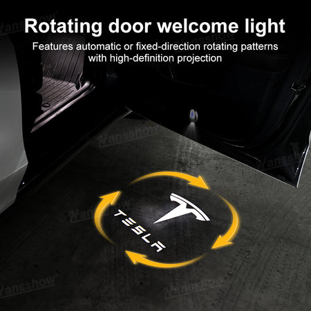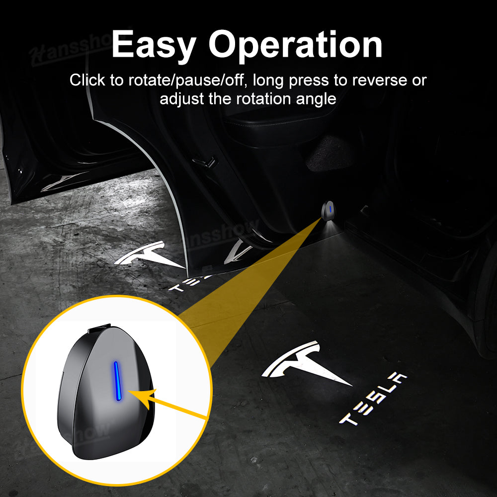 Rotating Logo Projection: Enjoy a vivid rotating Tesla logo projection every time you open your door with the Hansshow Welcome Door Projector Lights. The smooth spinning motion creates a dynamic, premium welcome effect that instantly elevates your Tesla’s presence. This rotating projection adds a futuristic flair that makes your Tesla stand out the moment the door opens.