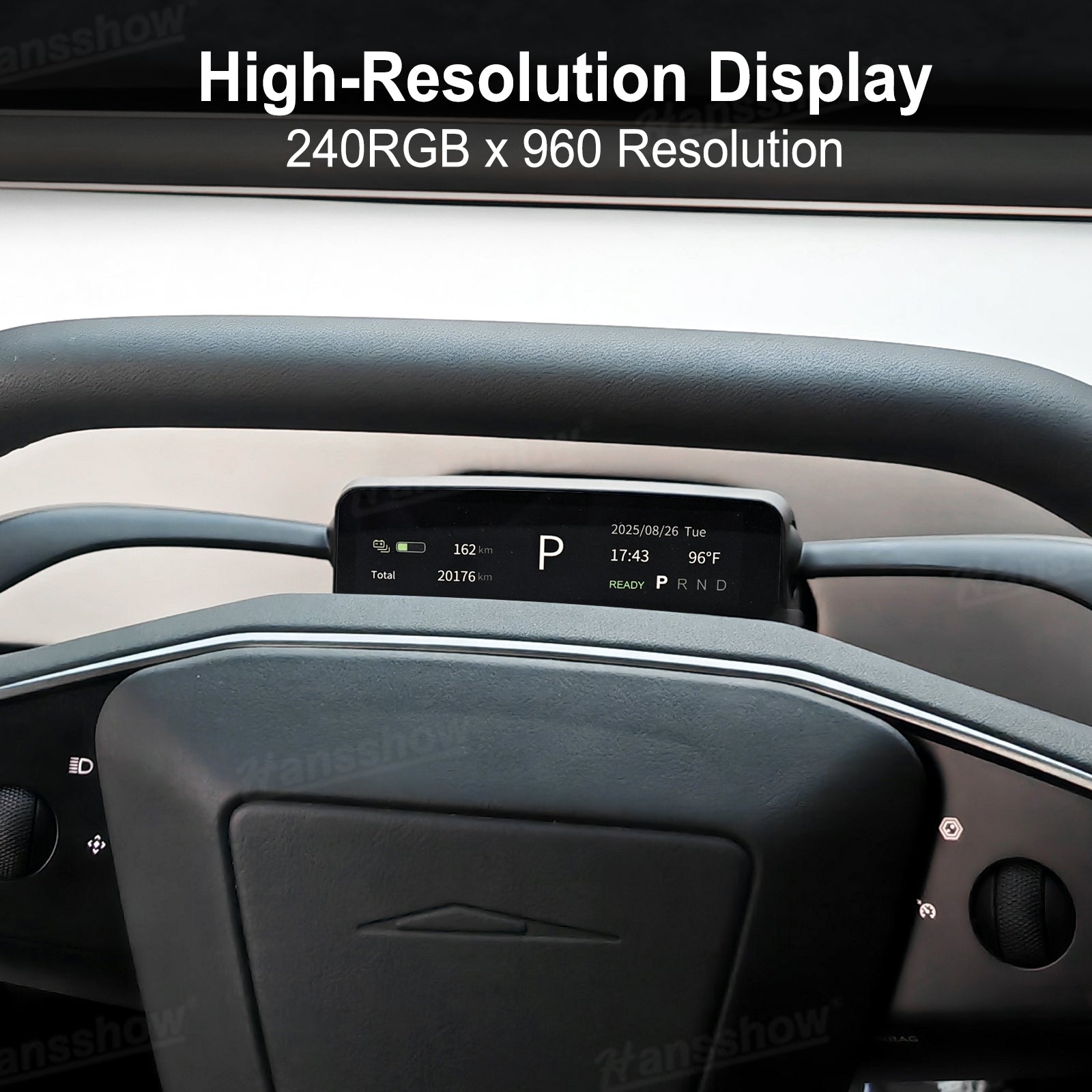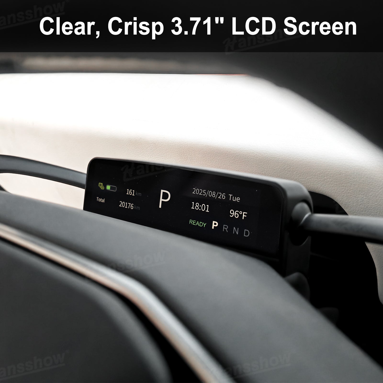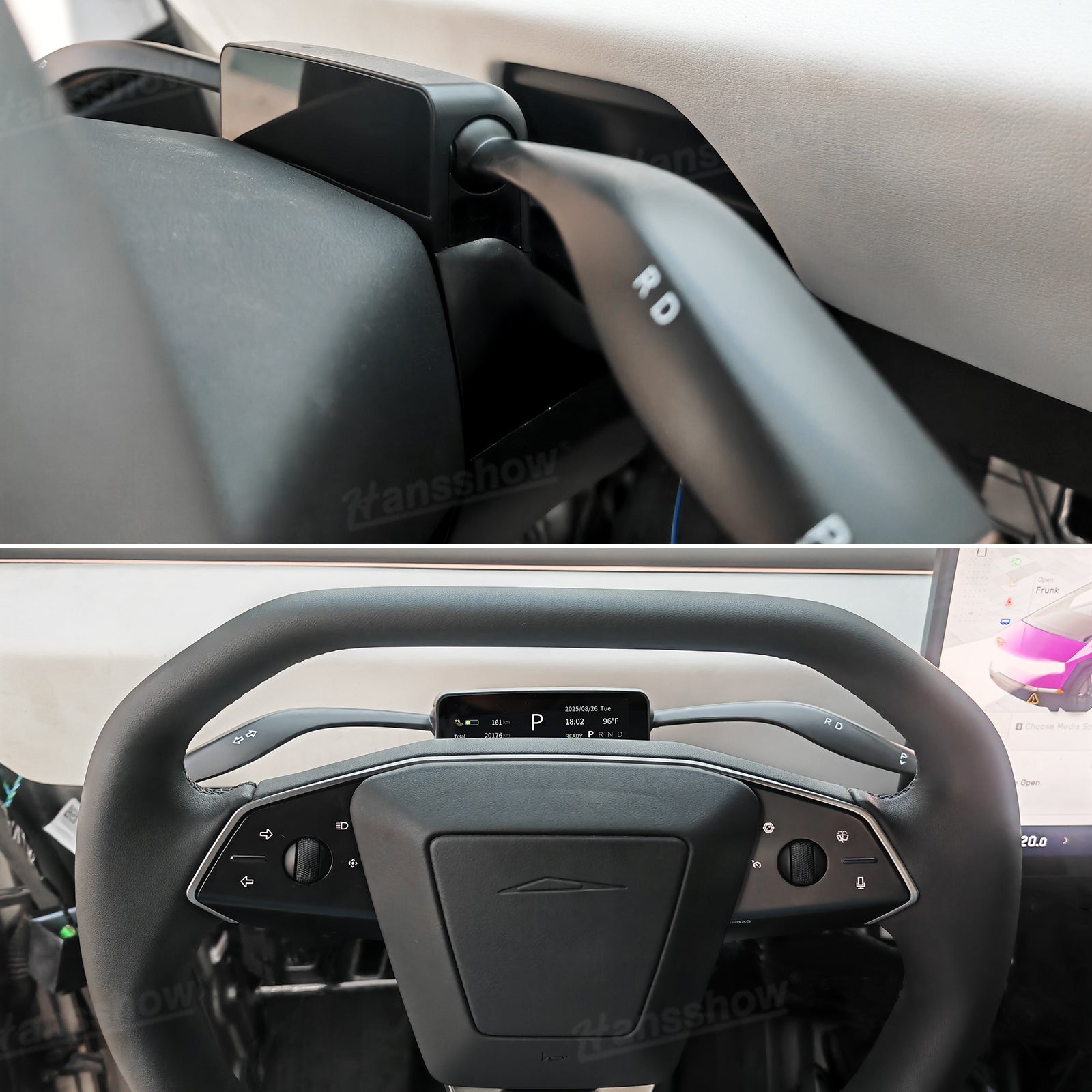 All-in-One Gear Shift and Display Design: Hansshow smart upgrade kit for Cybertruck integrates gear shift control stalks with a 3.71-inch LCD display in one seamless design. Effortlessly switch between Drive and Reverse while monitoring essential driving data like speed, range, and mileage—all in one compact, space-saving unit.