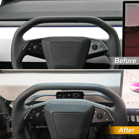 Hansshow’s advanced upgrade kit integrates gear shift control stalks and a crystal-clear 3.71" LCD display into one seamless design. You can switch between Drive and Reverse effortlessly while keeping real-time driving information such as speed, range, mileage, gear position, turn signals, headlights, and more directly in view. For extra convenience, press and hold the right gear stalk for 2 seconds to activate Park mode, ensuring intuitive operation and safer maneuvers every time.