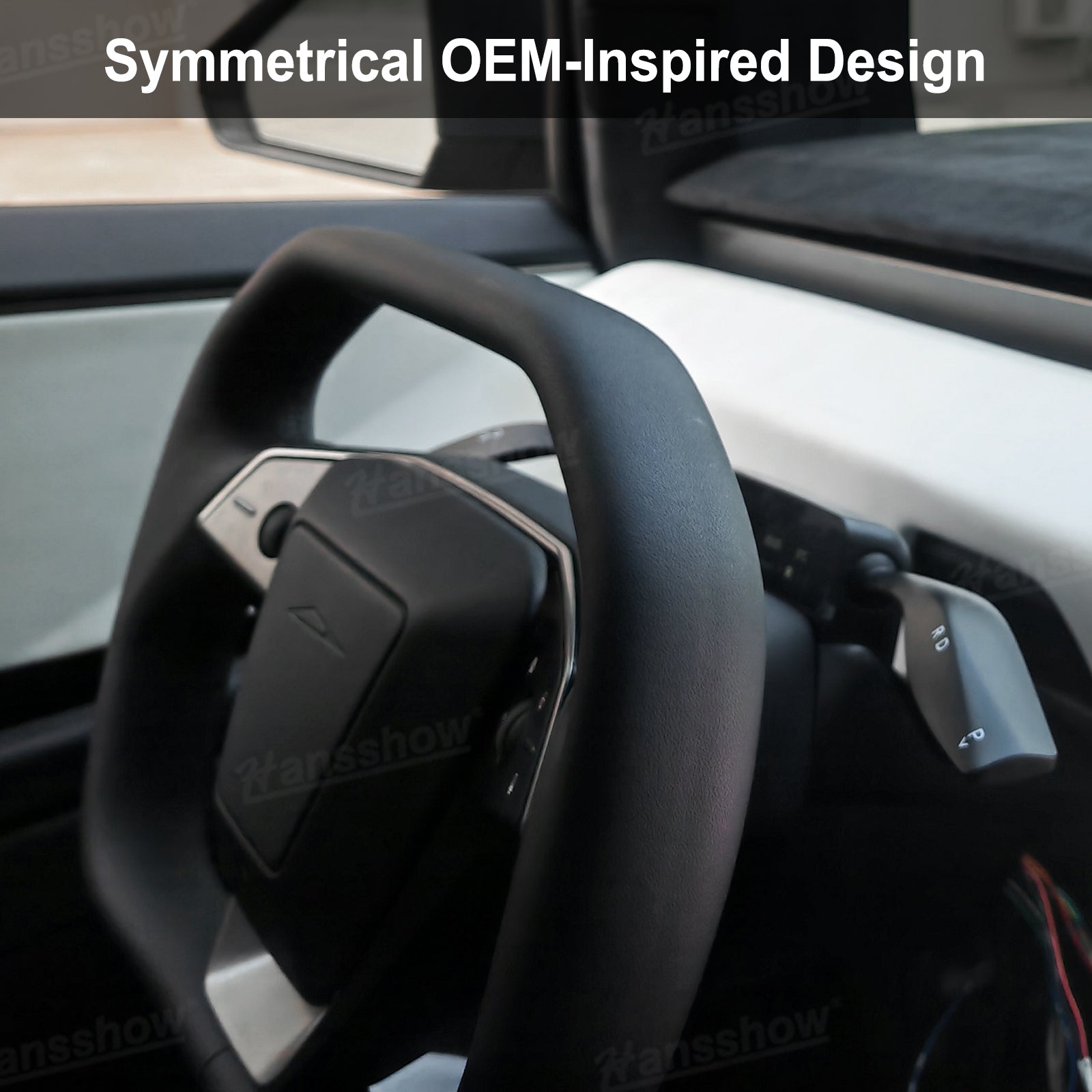 Symmetrical OEM-Inspired Design: Inspired by the Cybertruck’s futuristic interior, the stalks feature a fully symmetrical left-right layout that aligns perfectly with Tesla’s minimalist style. The balanced design blends smoothly with the cabin’s geometric lines, delivering a factory-like look and an organized, polished feel.