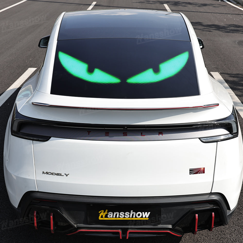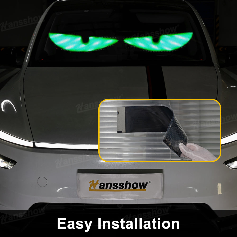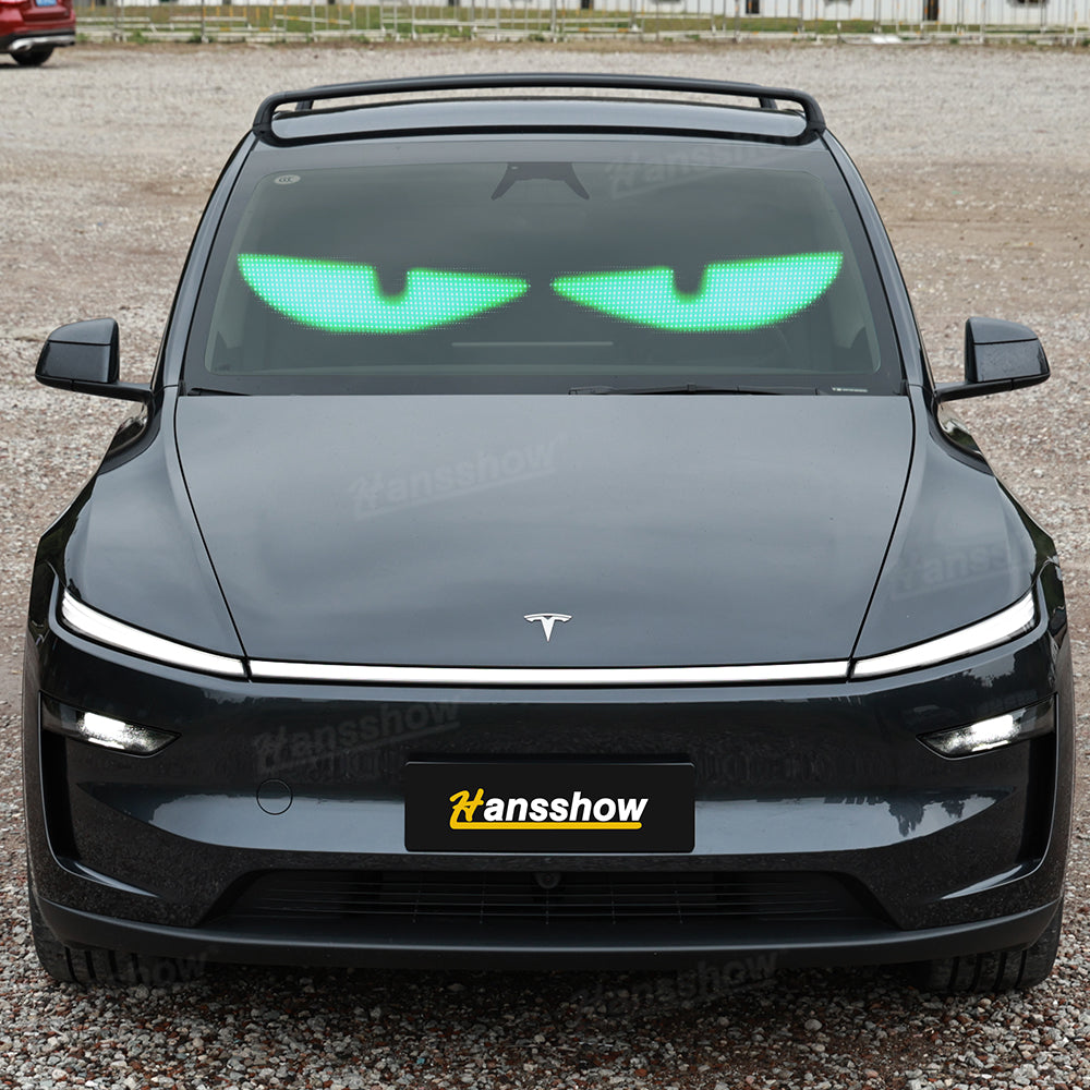 Ultra-Thin Flexible Design: The Hansshow Devil Eyes Lights easily bend or shape to fit your Model Y windshield, providing a seamless, custom look. The full panel measures 4.7 × 23.4 inches, perfect for windshield installation.