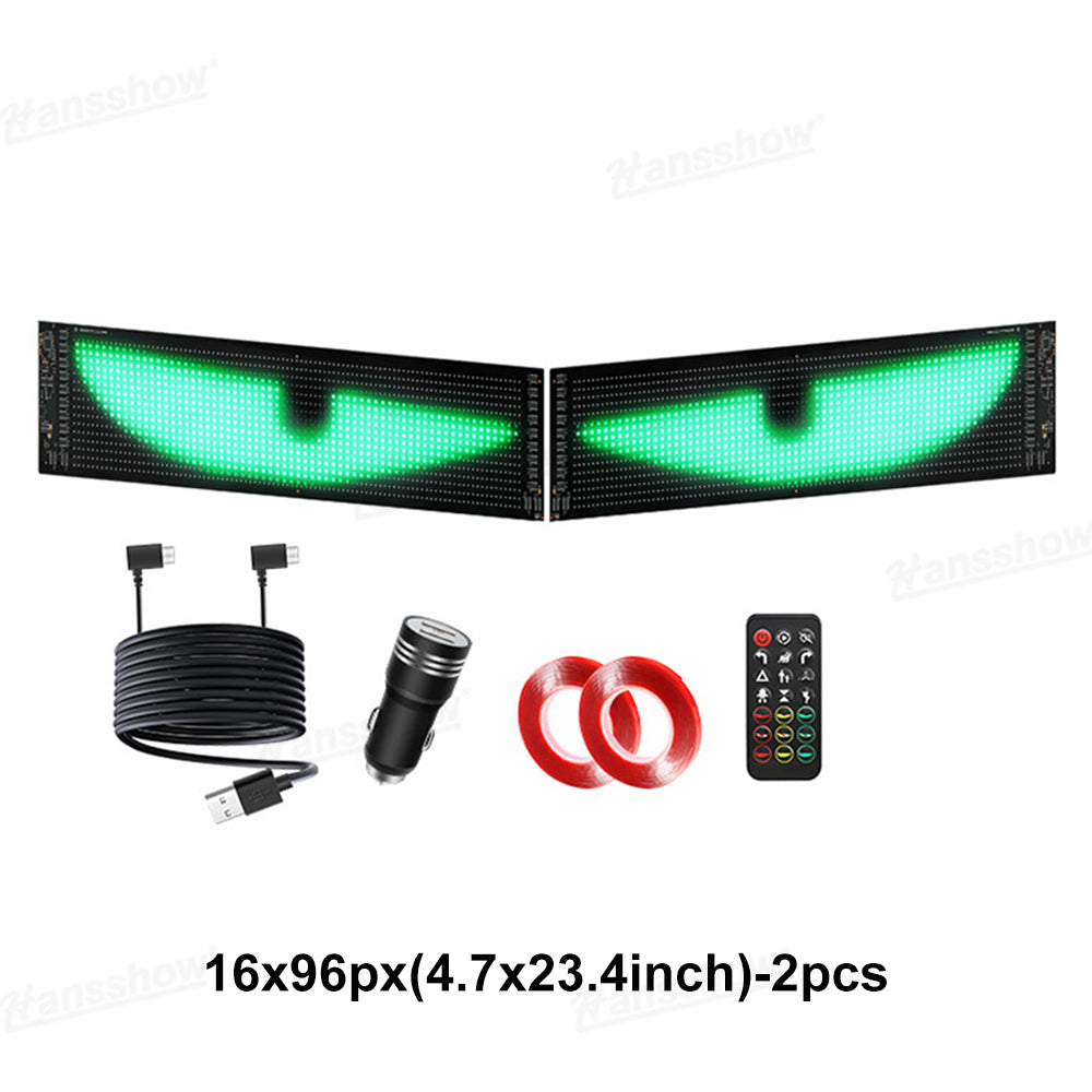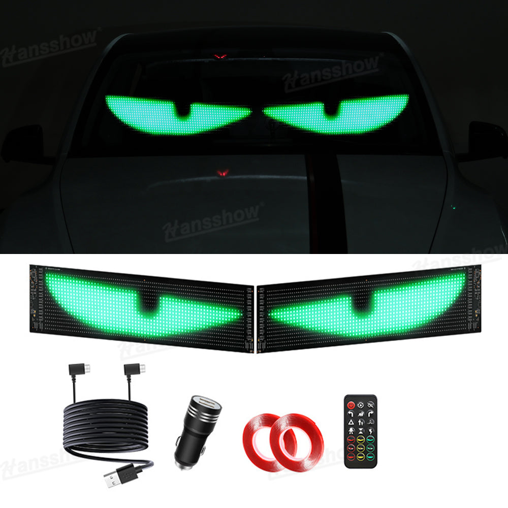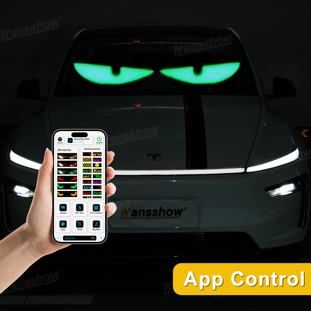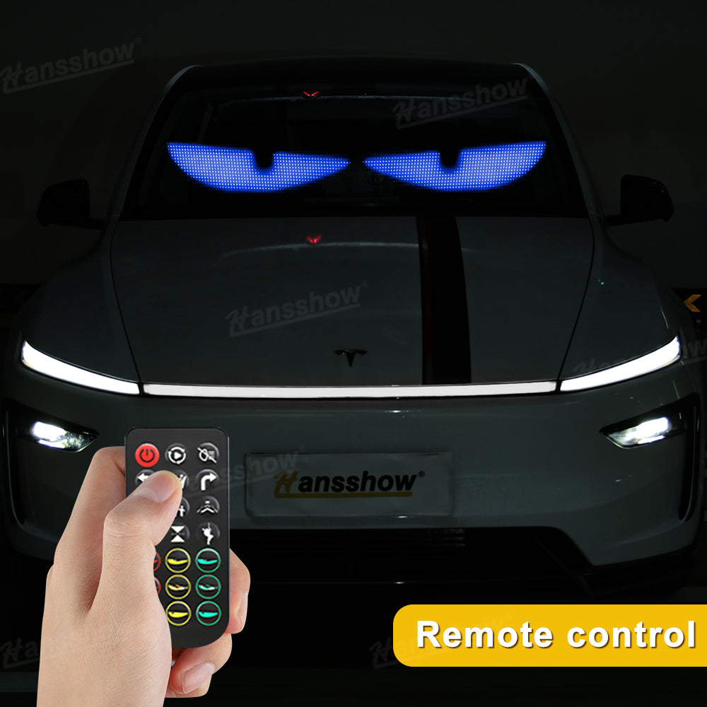 Ultra-Thin Flexible Design: The Hansshow Devil Eyes Lights easily bend or shape to fit your Model Y windshield, providing a seamless, custom look. The full panel measures 4.7 × 23.4 inches, perfect for windshield installation.