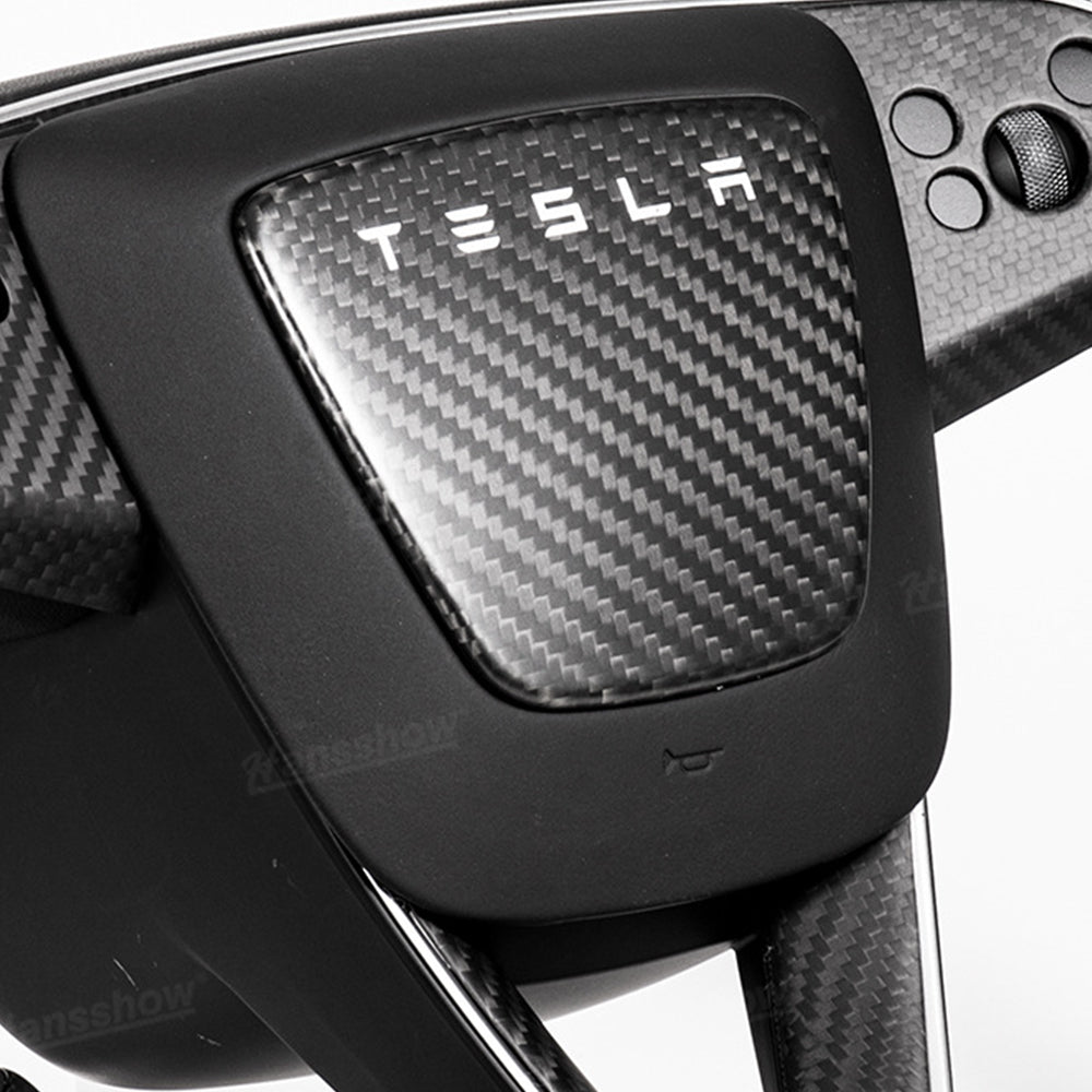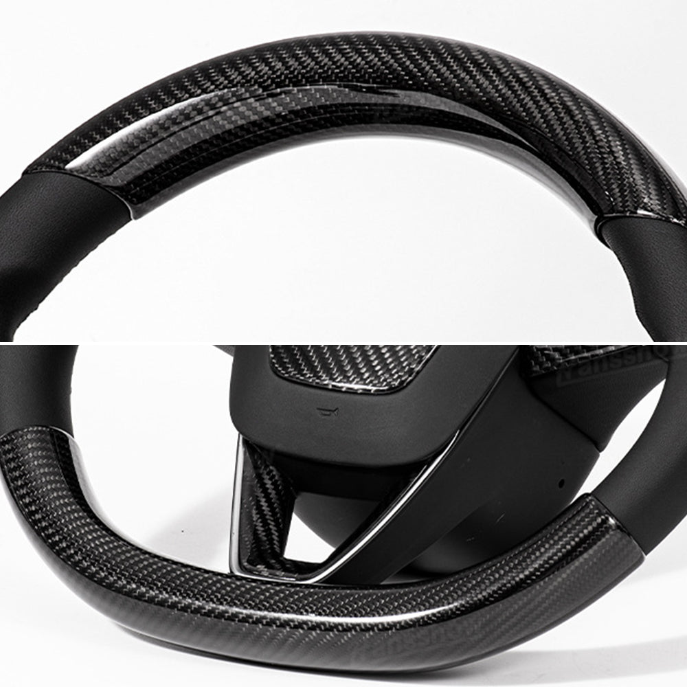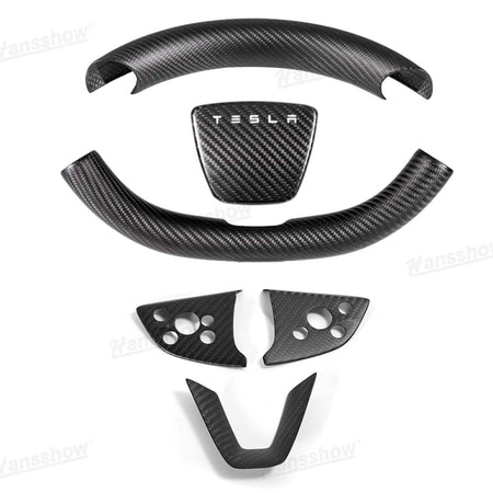 Model Y Juniper Real Carbon Fiber Steering Wheel Trim Kit with Upper & Lower Covers and Button Frame and Horn Cap