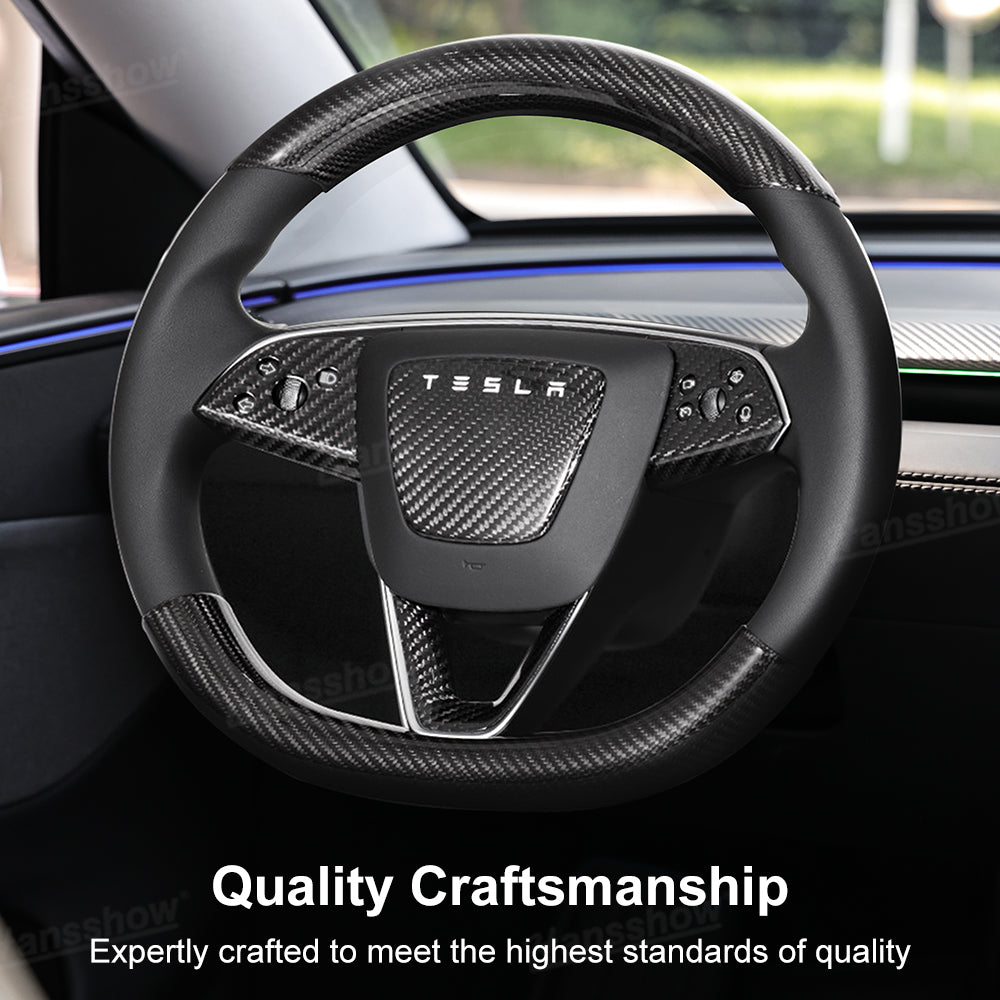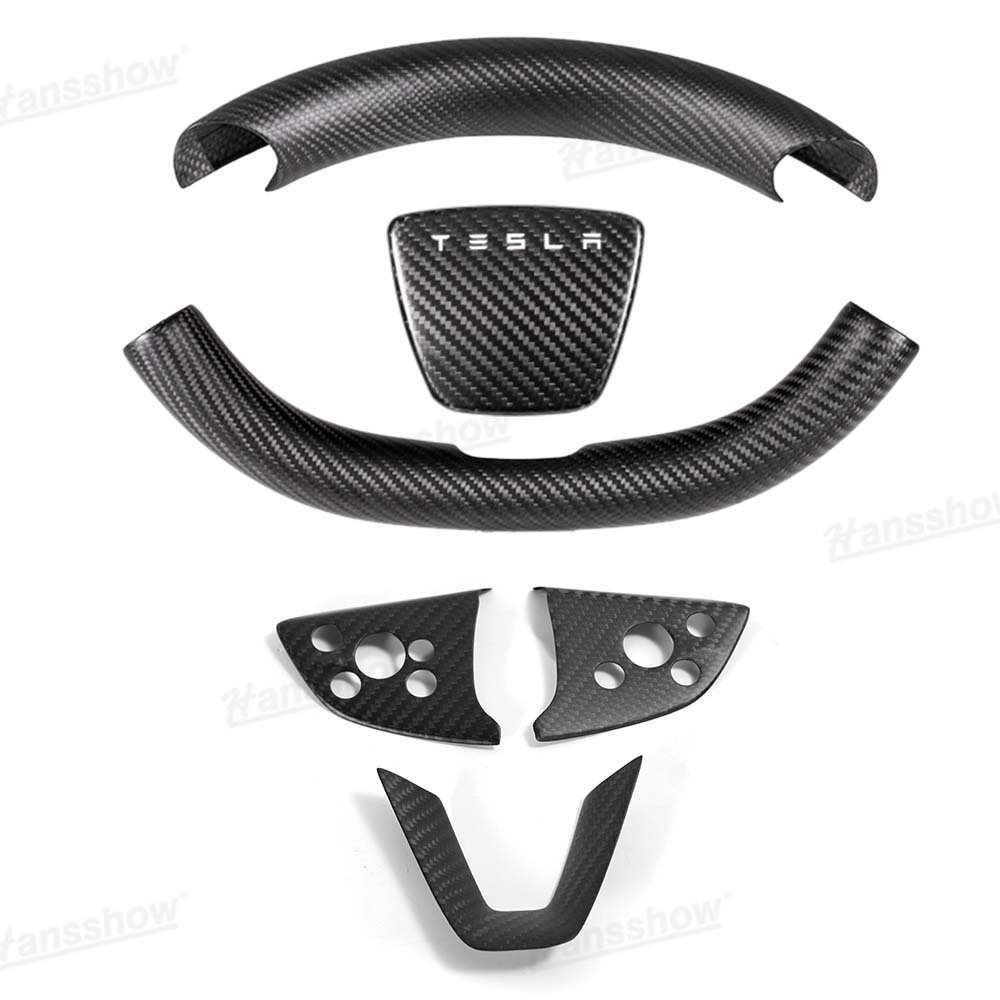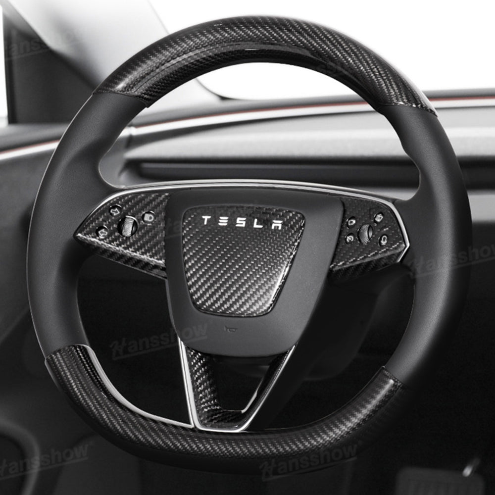 Premium Real Carbon Fiber: The Hansshow Model Y Juniper Real Carbon Fiber Steering Wheel Trim Kit is made from 100% authentic carbon fiber. Available in matte or glossy finish, it is strong, lightweight, and built to last.