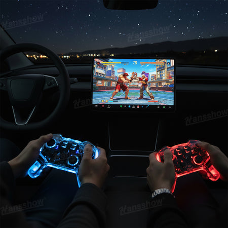 Crafted with a transparent shell that showcases the internal structure, Hansshow Wireless Game Controller blends futuristic aesthetics with long term comfort. The smooth contours and ergonomic grip are shaped to fit naturally in your hands, reducing fatigue during extended gaming sessions whether you are parked, on a road trip, or relaxing at home. Textured surfaces provide a secure hold, while the lightweight build makes quick movements and precision controls feel effortless. The modern clear design not only looks sharp inside your Tesla cabin but also adds a sleek tech forward touch that stands out in any setting.