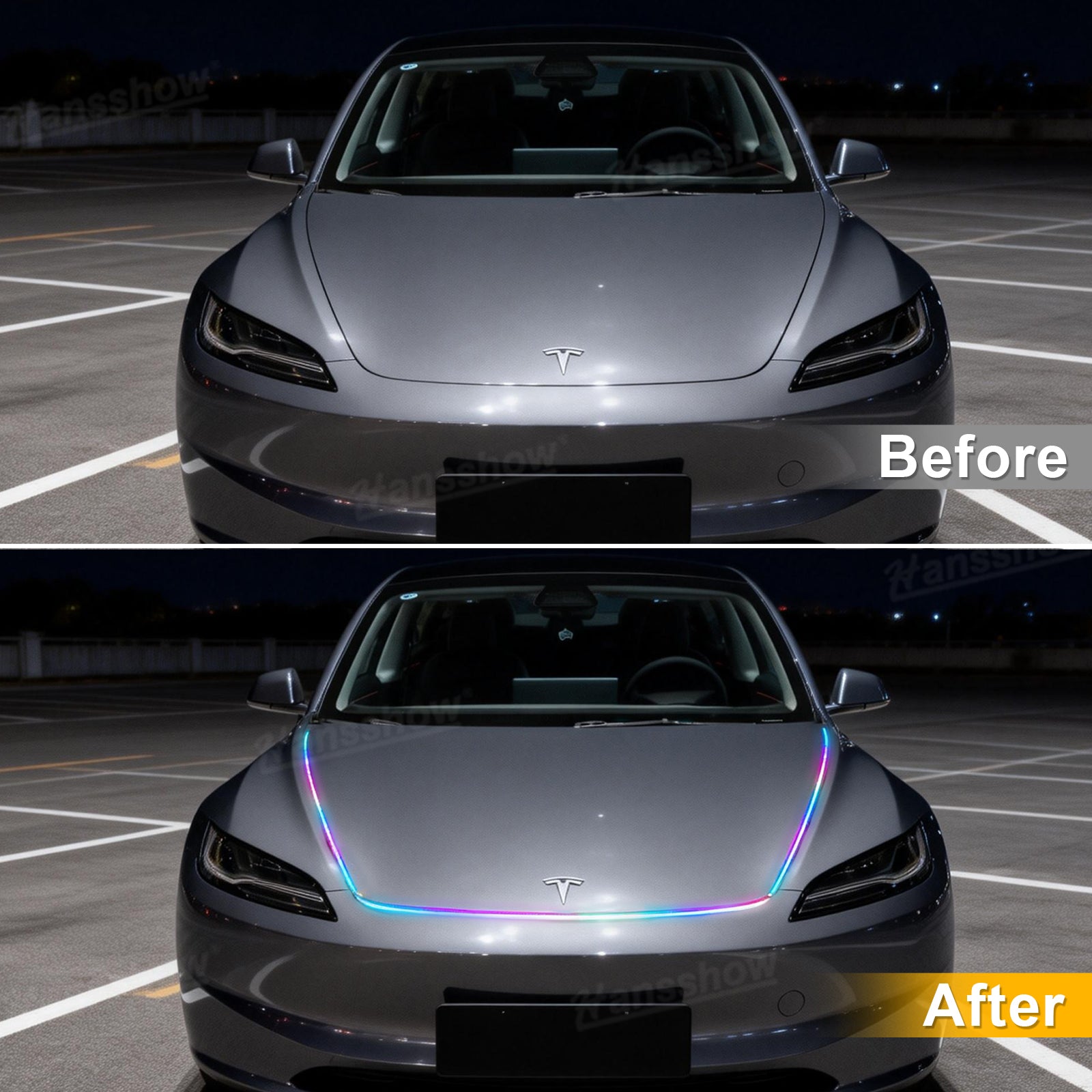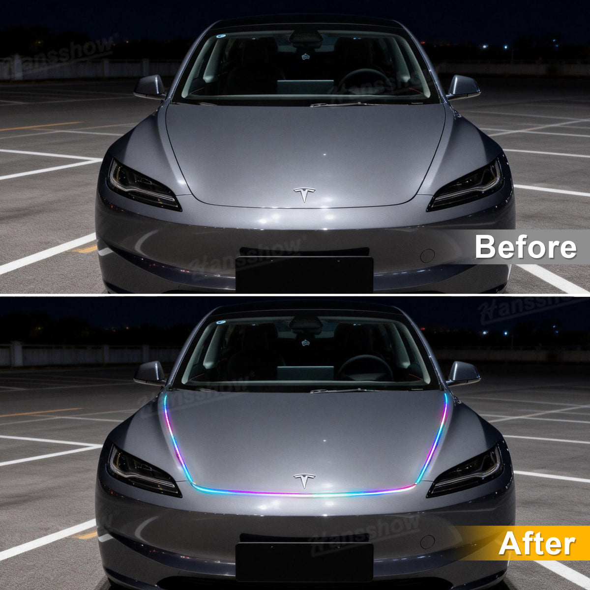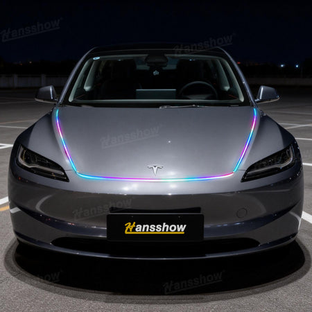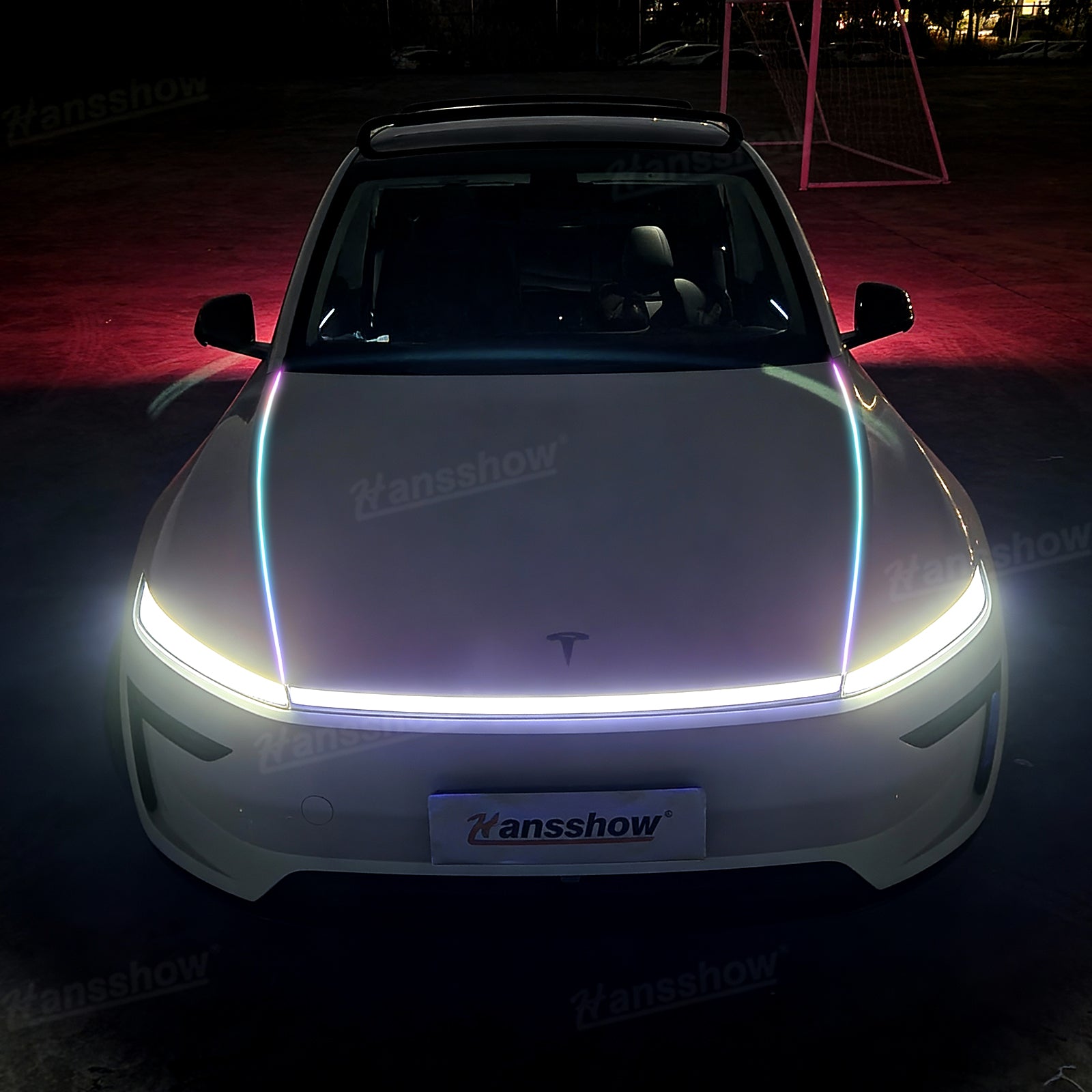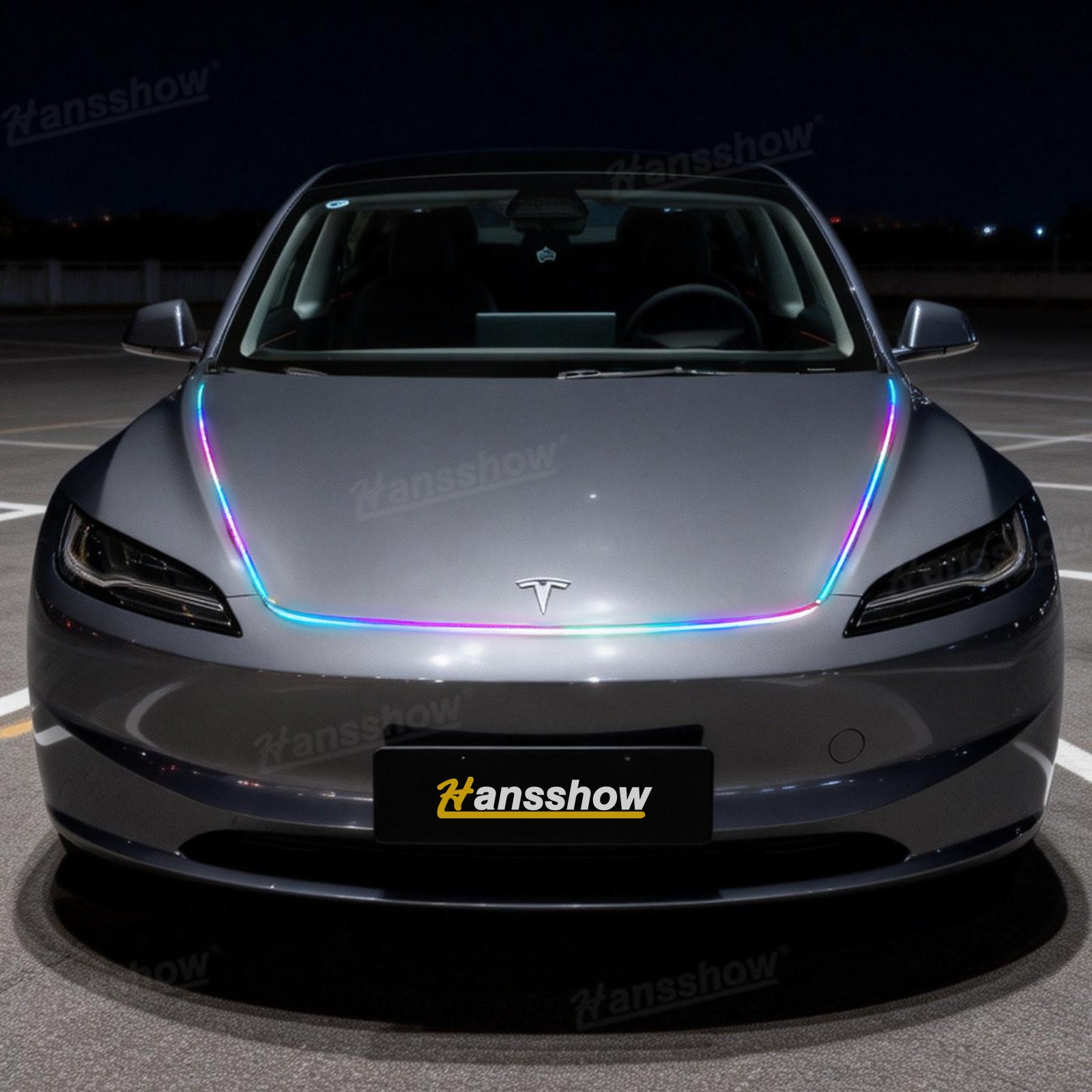Vehicle-Specific OEM Fitment: Engineered exclusively for the Model Y Juniper and Model 3 Highland, this Hansshow Ambient Lighting hood-mounted RGB light strip integrates seamlessly with the front-end design. The contour-matched housing ensures a clean, factory-style appearance with no gaps or uneven edges.