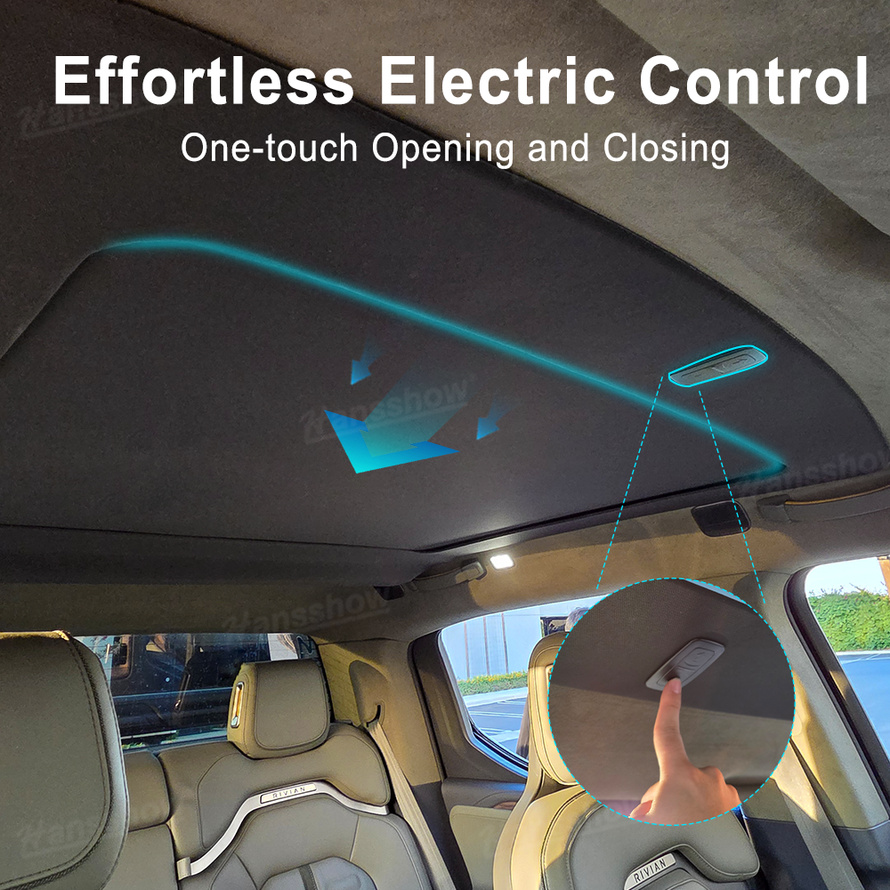 Elevate your Rivian R1T driving experience with Hansshow’s intelligent retractable sunshade, which designed for comfort, protection, and effortless control. With a single tap, block harsh sunlight, beat the summer heat.
