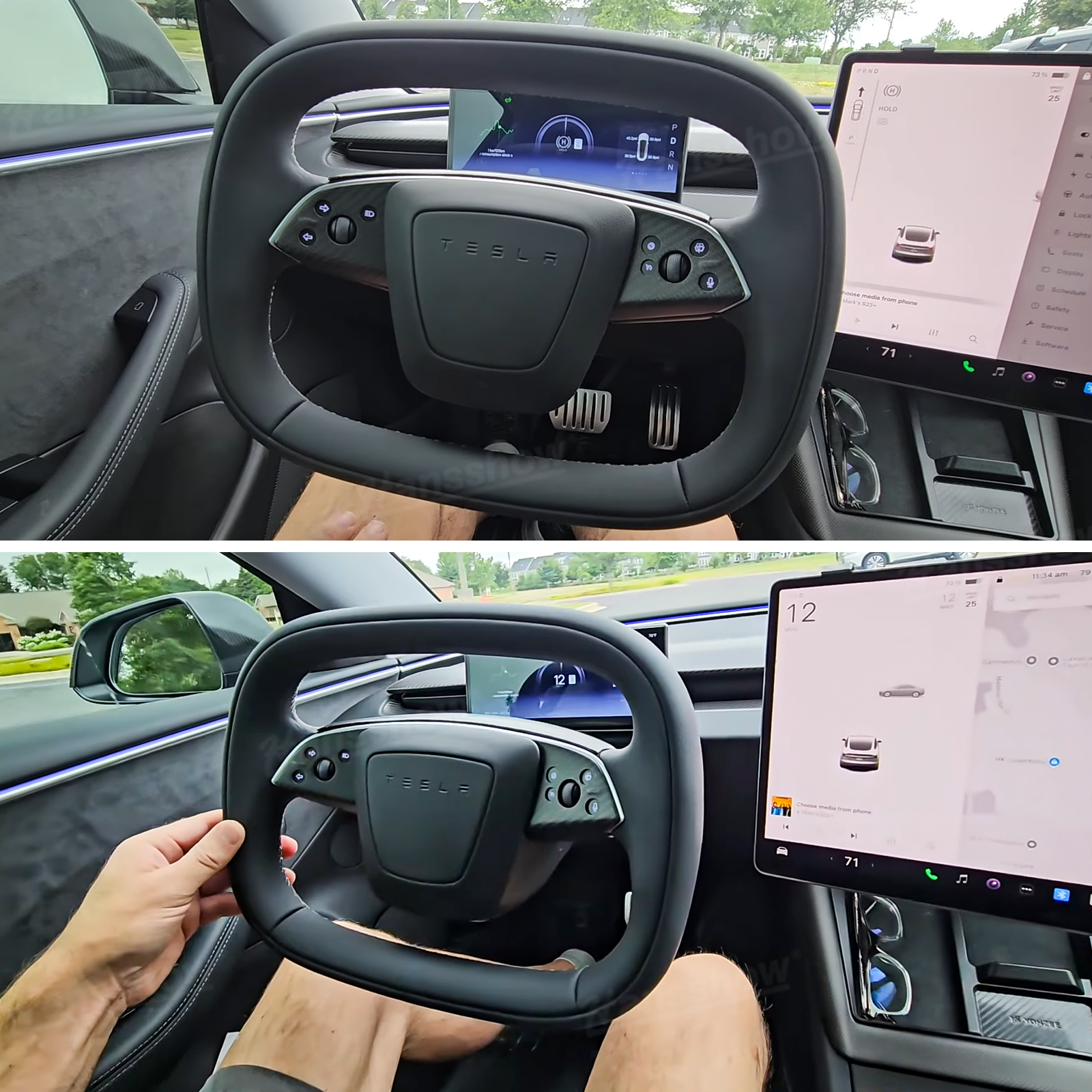 Whether your Model 3 Highland features black, white, or wood-tone accents, Hansshow Cyber yoke steering wheel inspired by Starlink is designed to blend right in. Each version is carefully color-matched to Tesla’s interior finishes, so it looks like it rolled out of the factory that way.